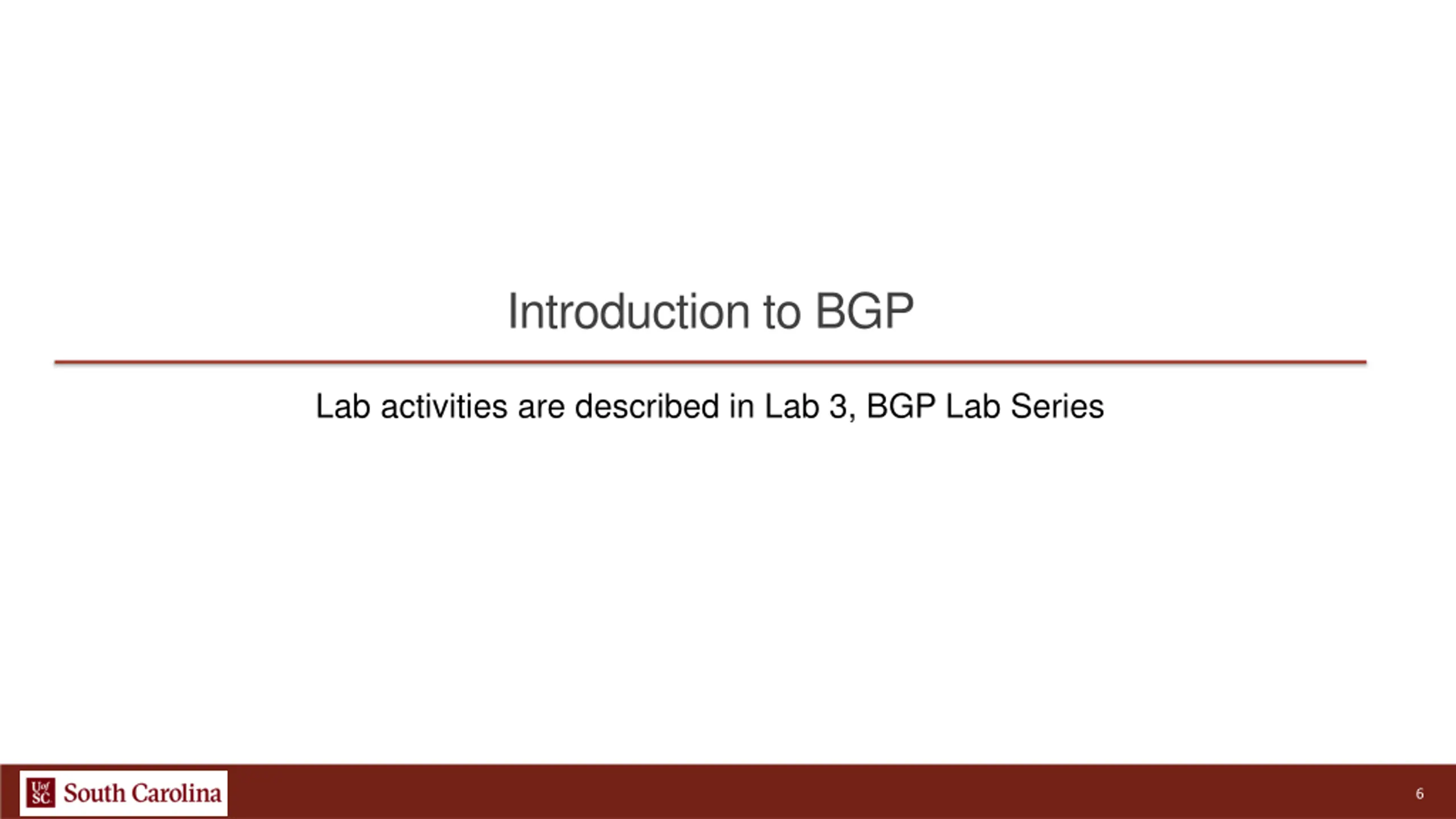 Introduction to BGP Lab activities are described in Lab 3, BGP Lab Series 6