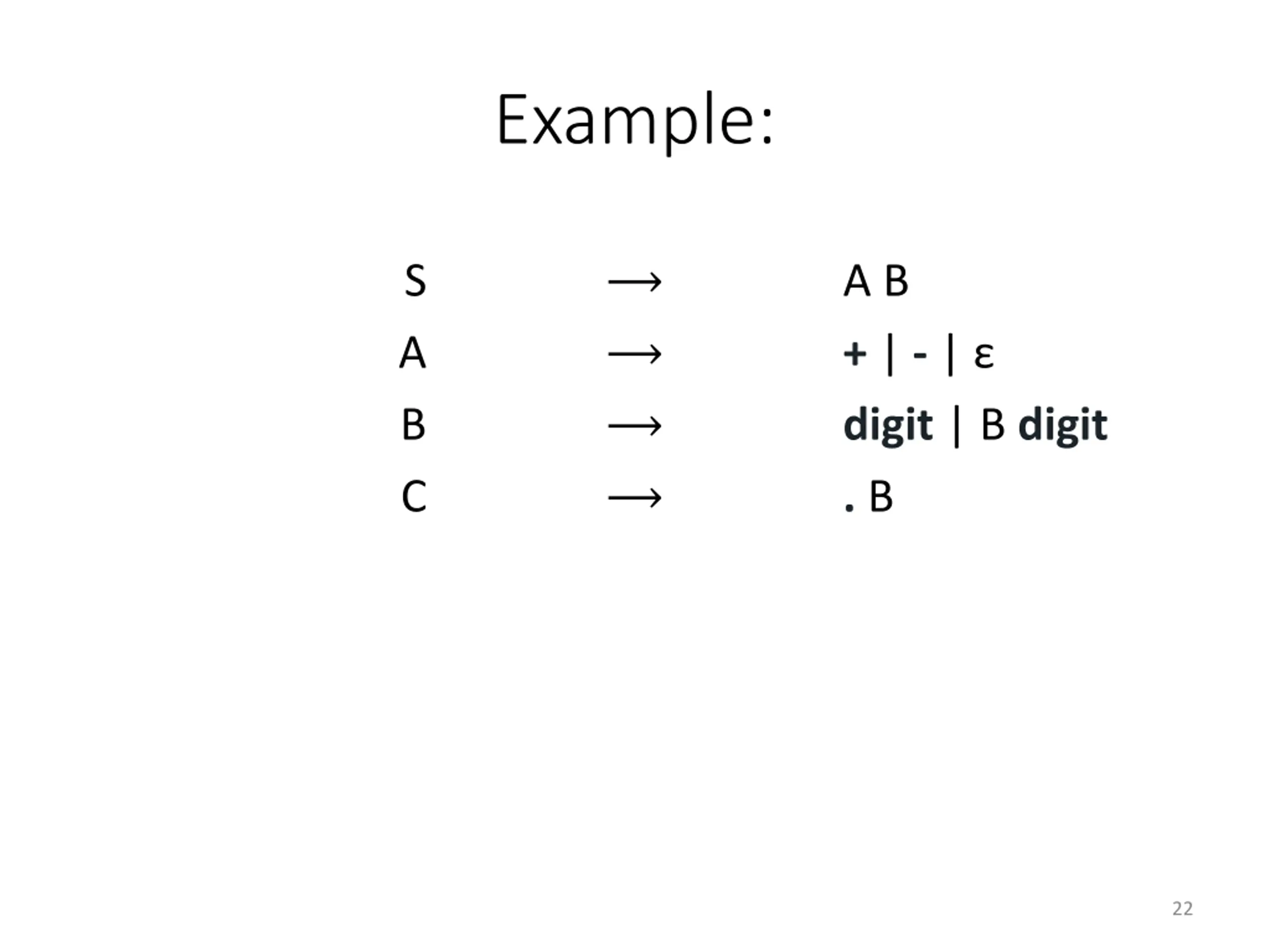 Example: S A B C A B + | - | digit | B digit . B 22