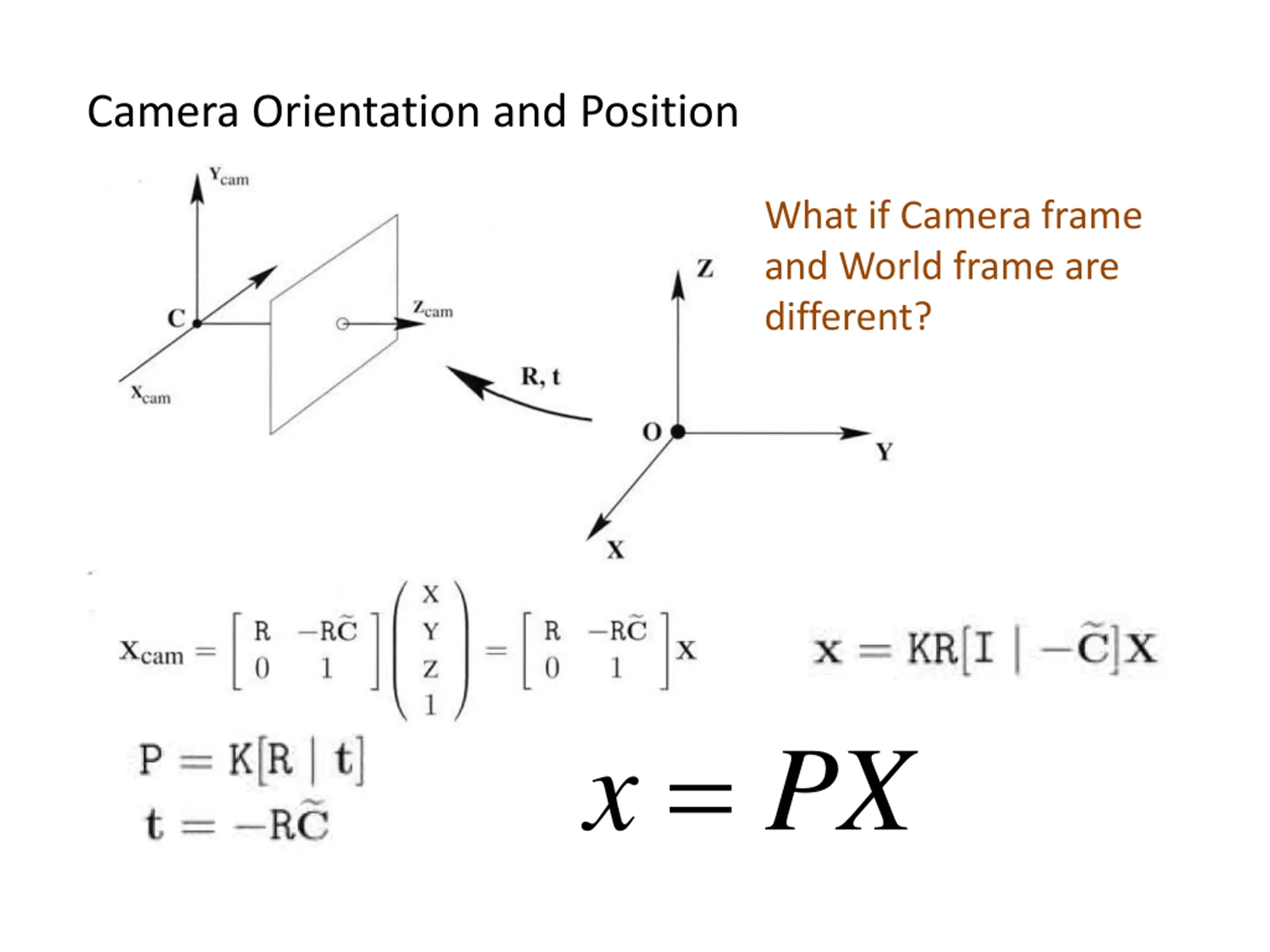 Camera Orientation and Position What if Camera frame and World frame are different? = x PX