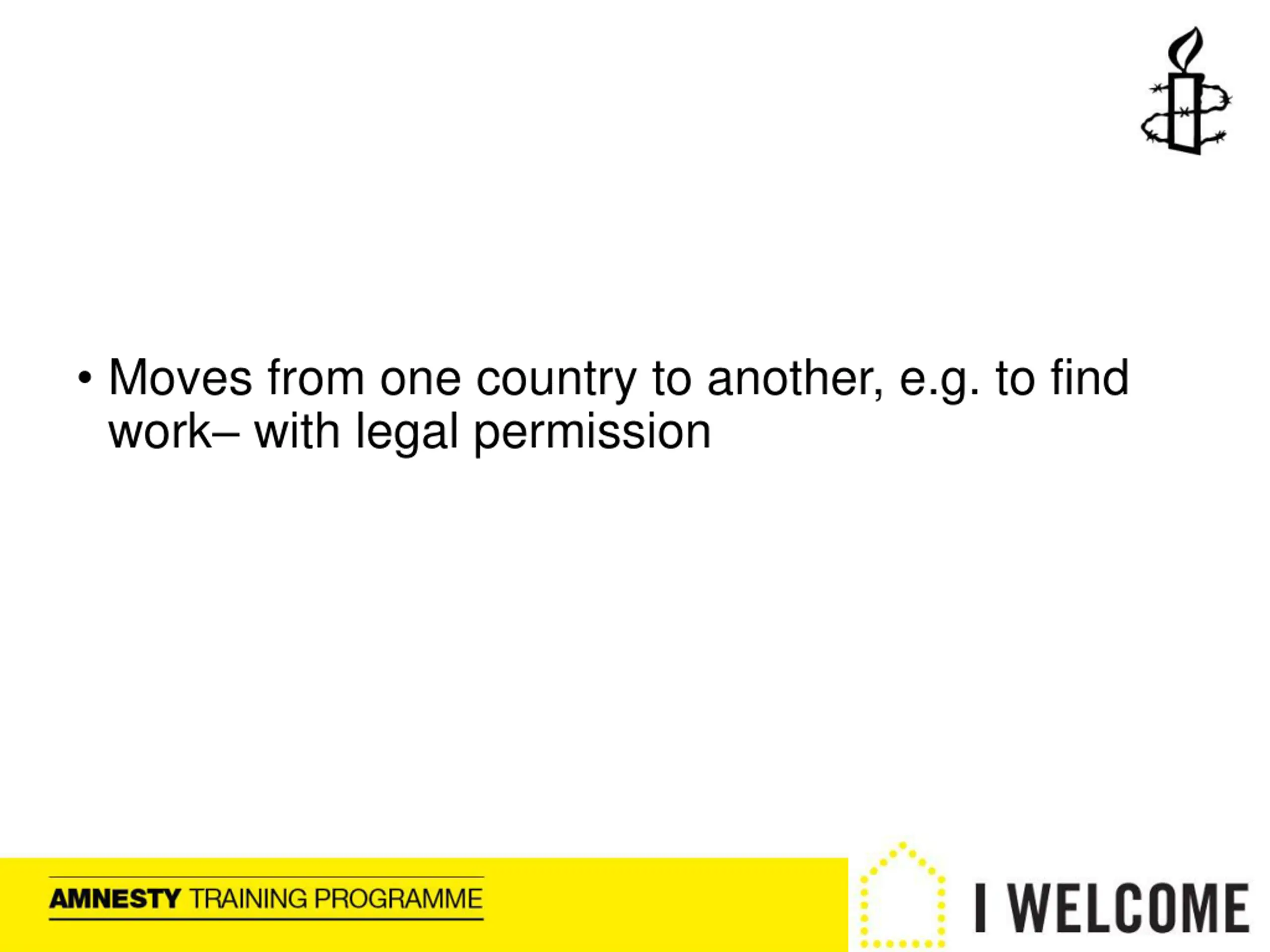 Moves from one country to another, e.g. to find work with legal permission