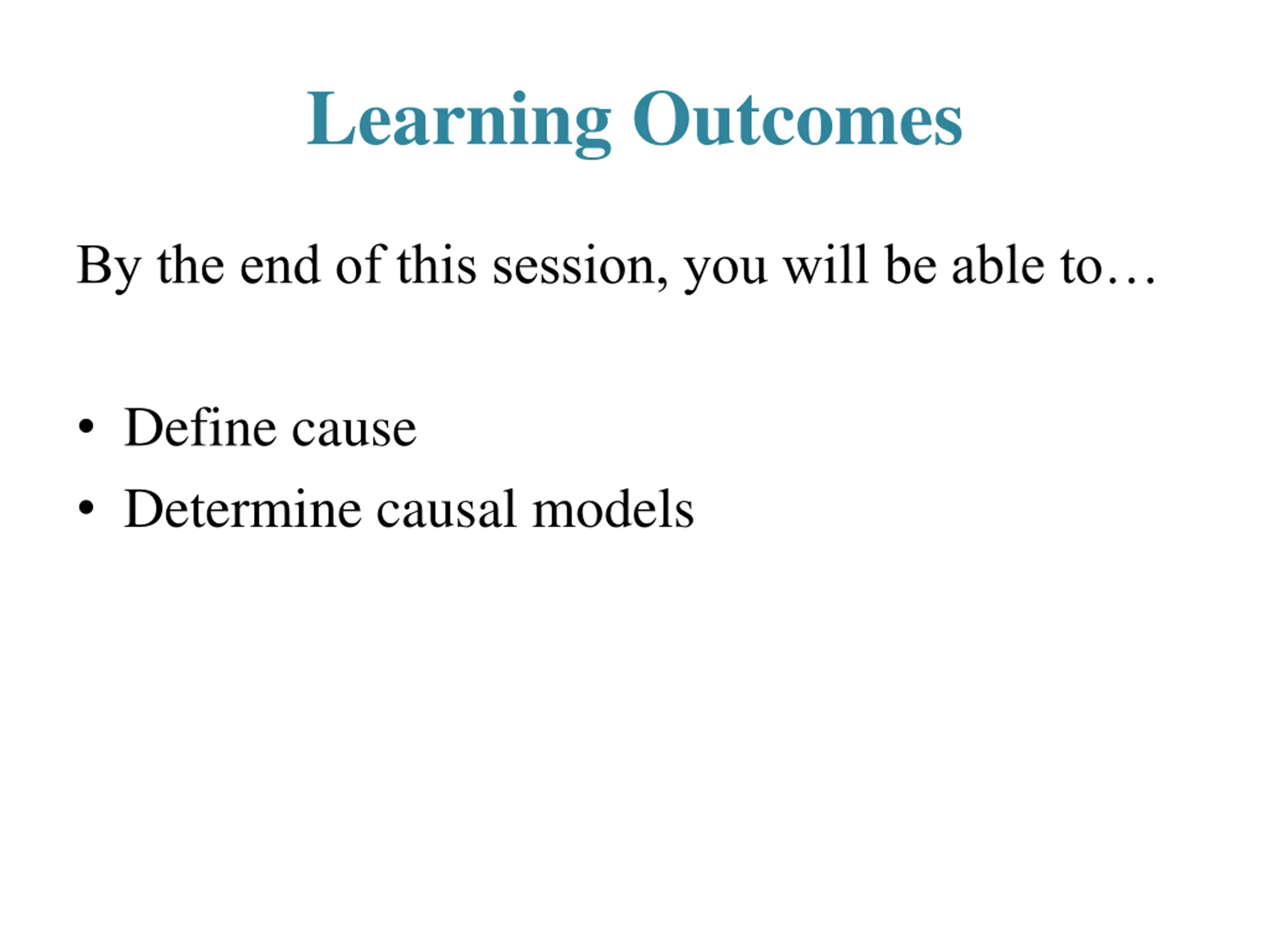 Learning Outcomes By the end of this session, you will be able to Define cause Determine causal models