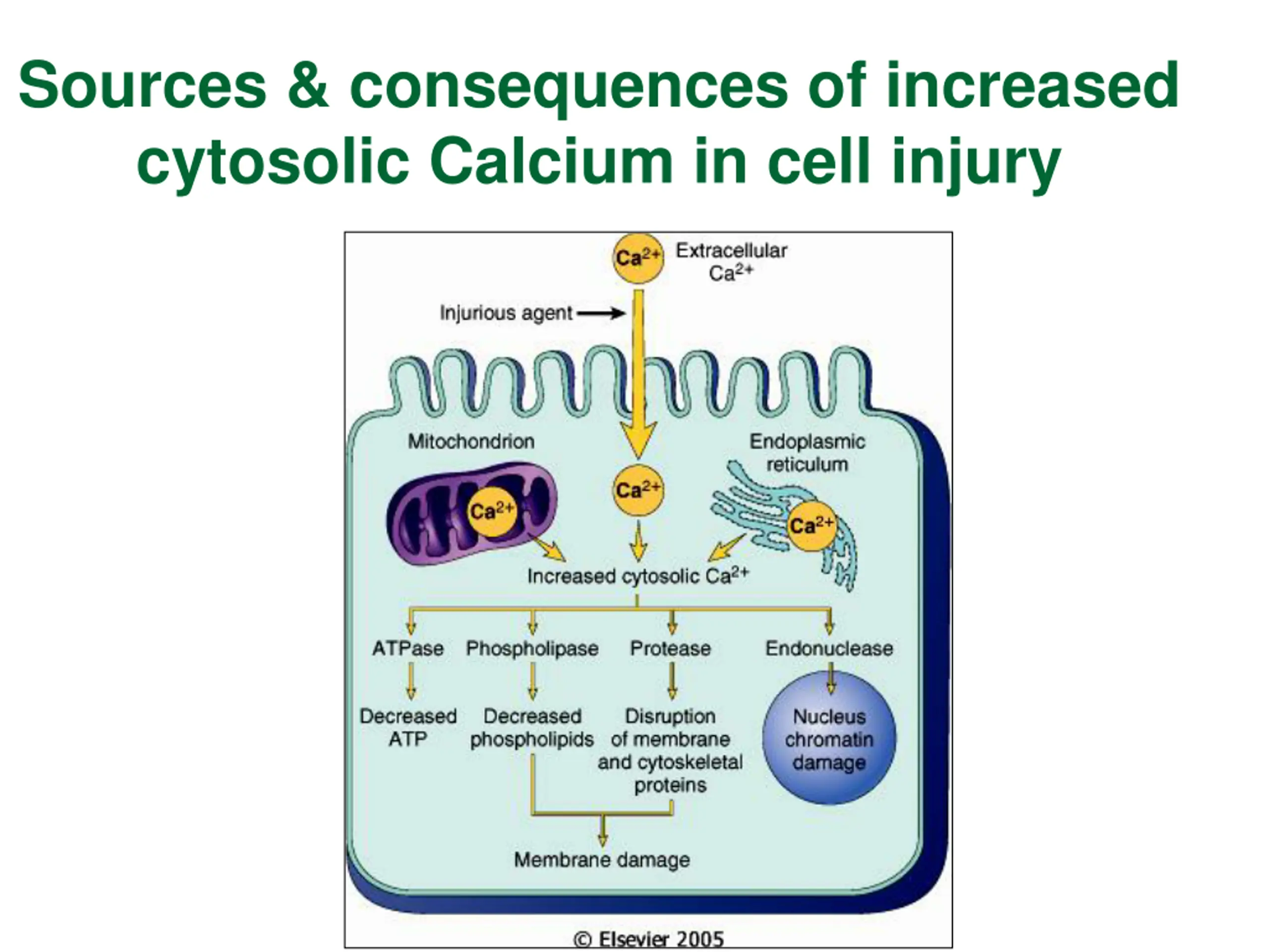 Sources & consequences of increased cytosolic Calcium in cell injury