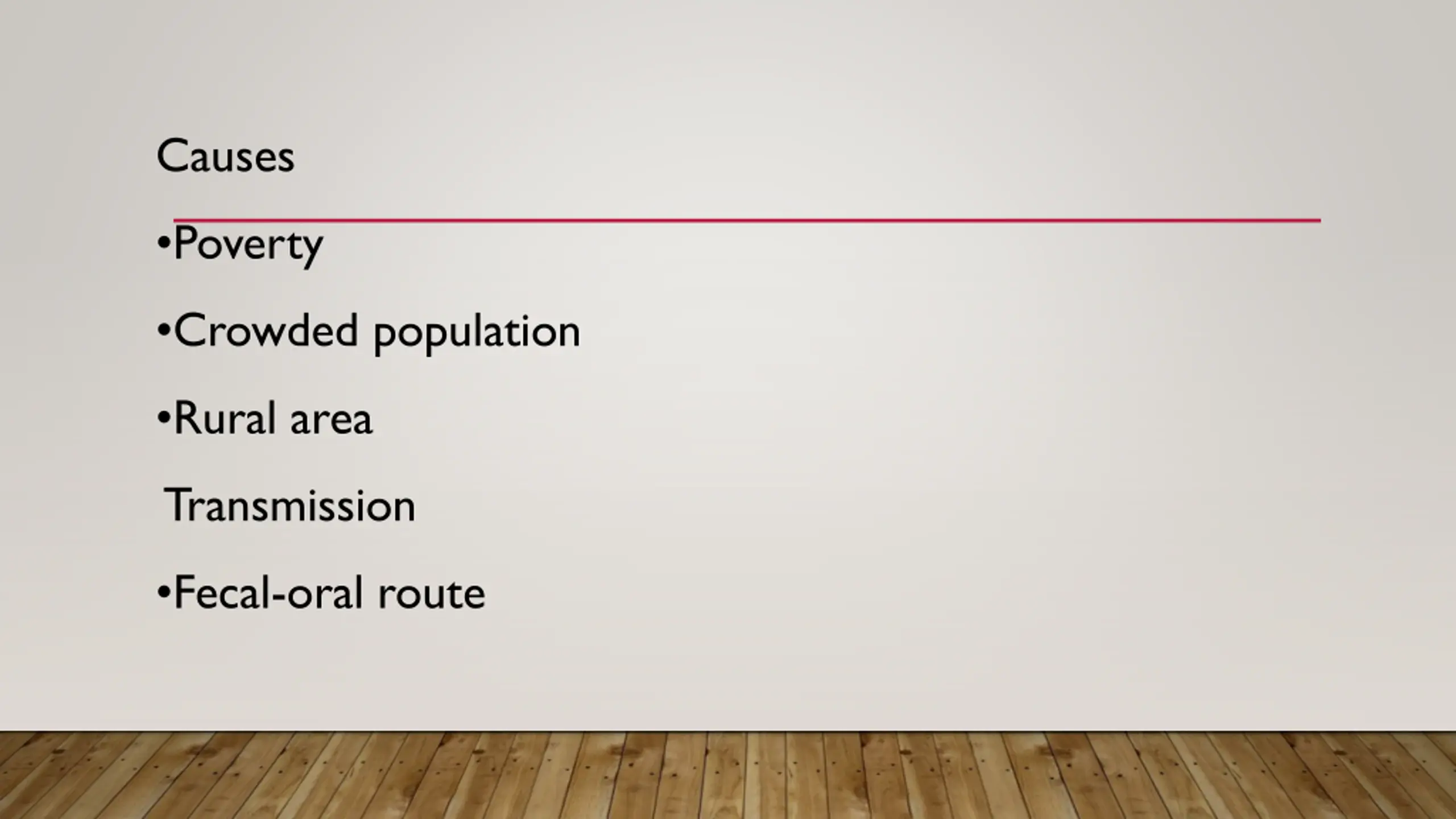 Causes Poverty Crowded population Rural area Transmission Fecal-oral route