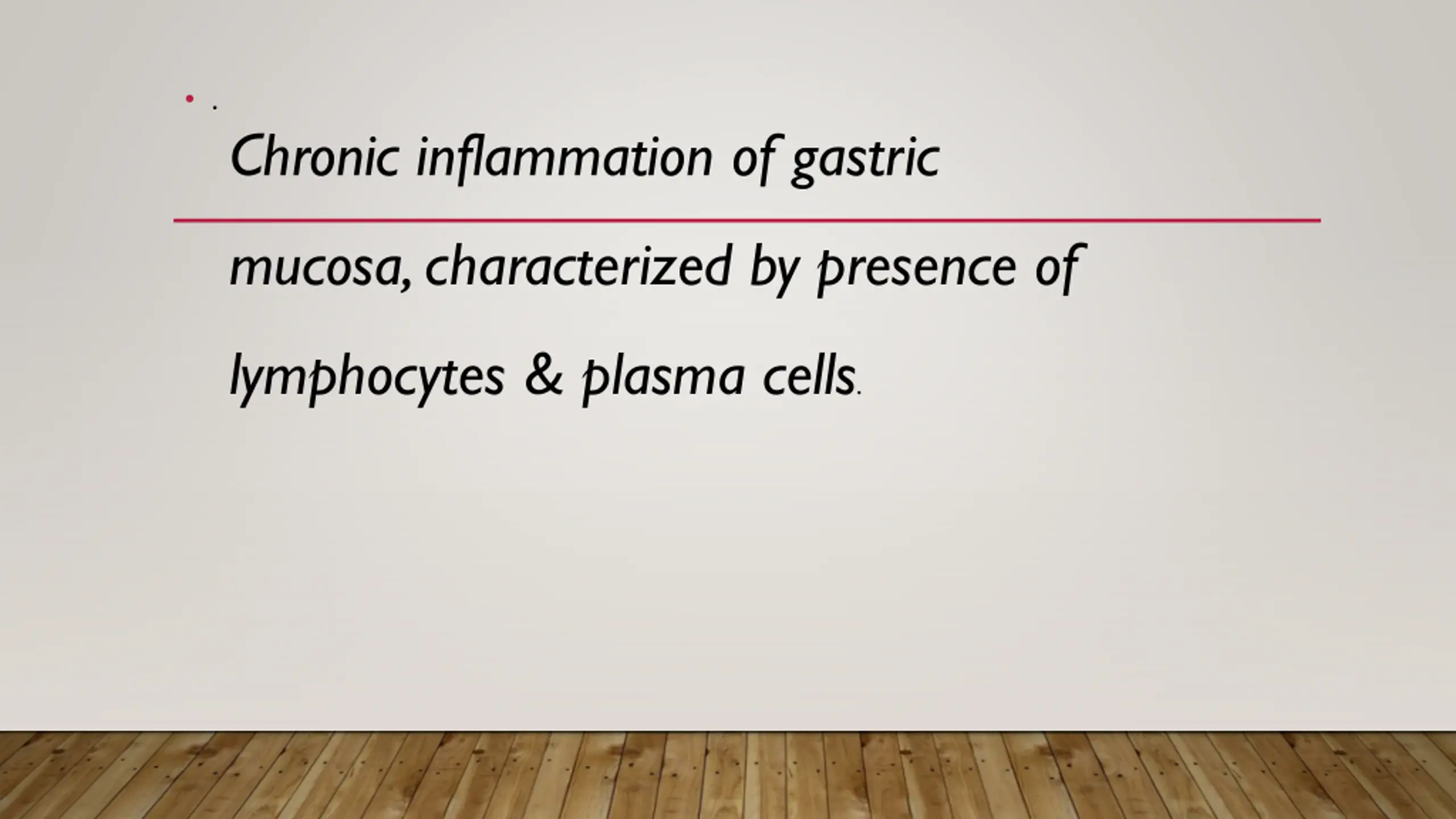 . Chronic inflammation of gastric mucosa, characterized by presence of lymphocytes & plasma cells.