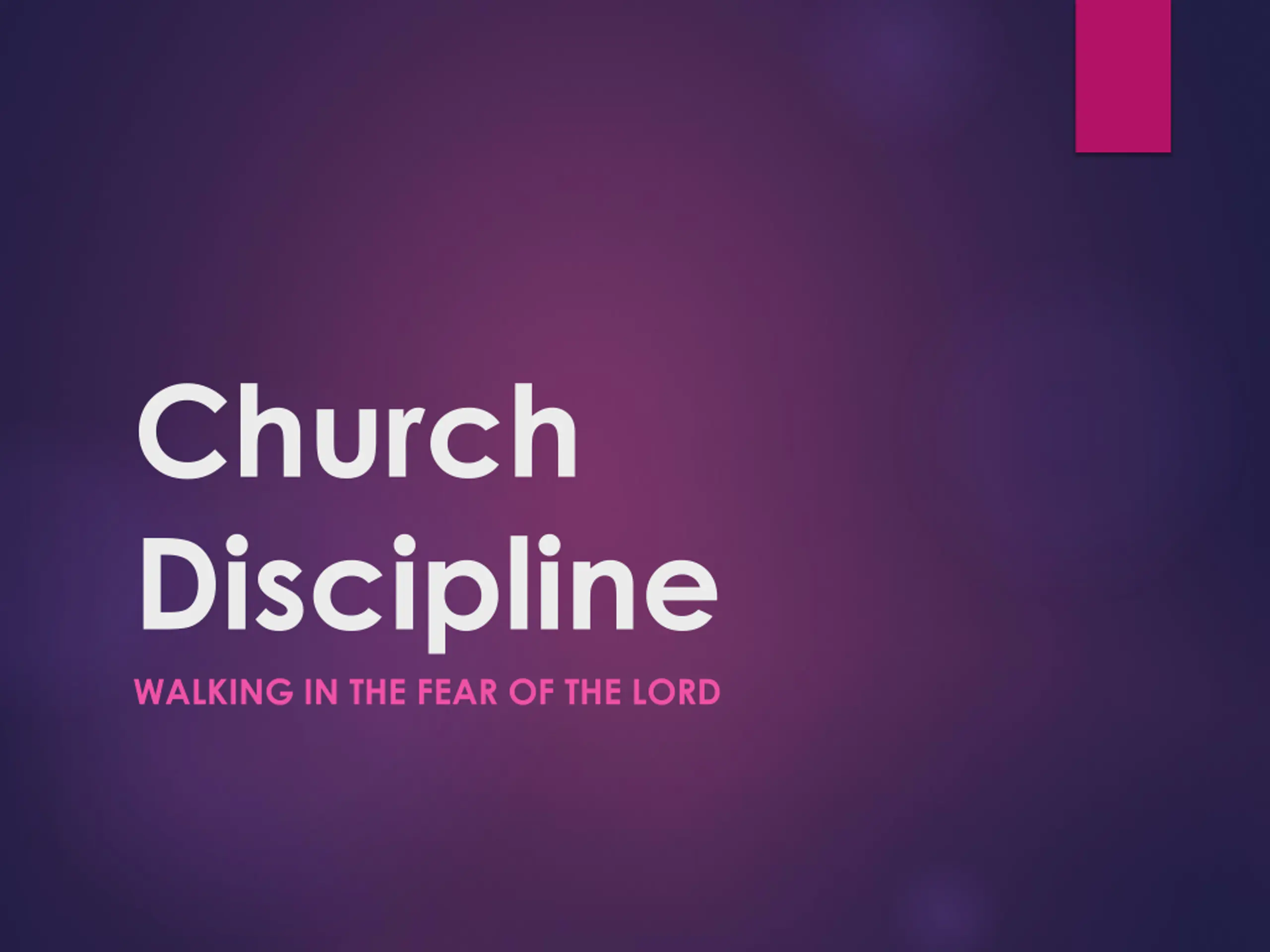 Church Discipline WALKING IN THE FEAR OF THE LORD