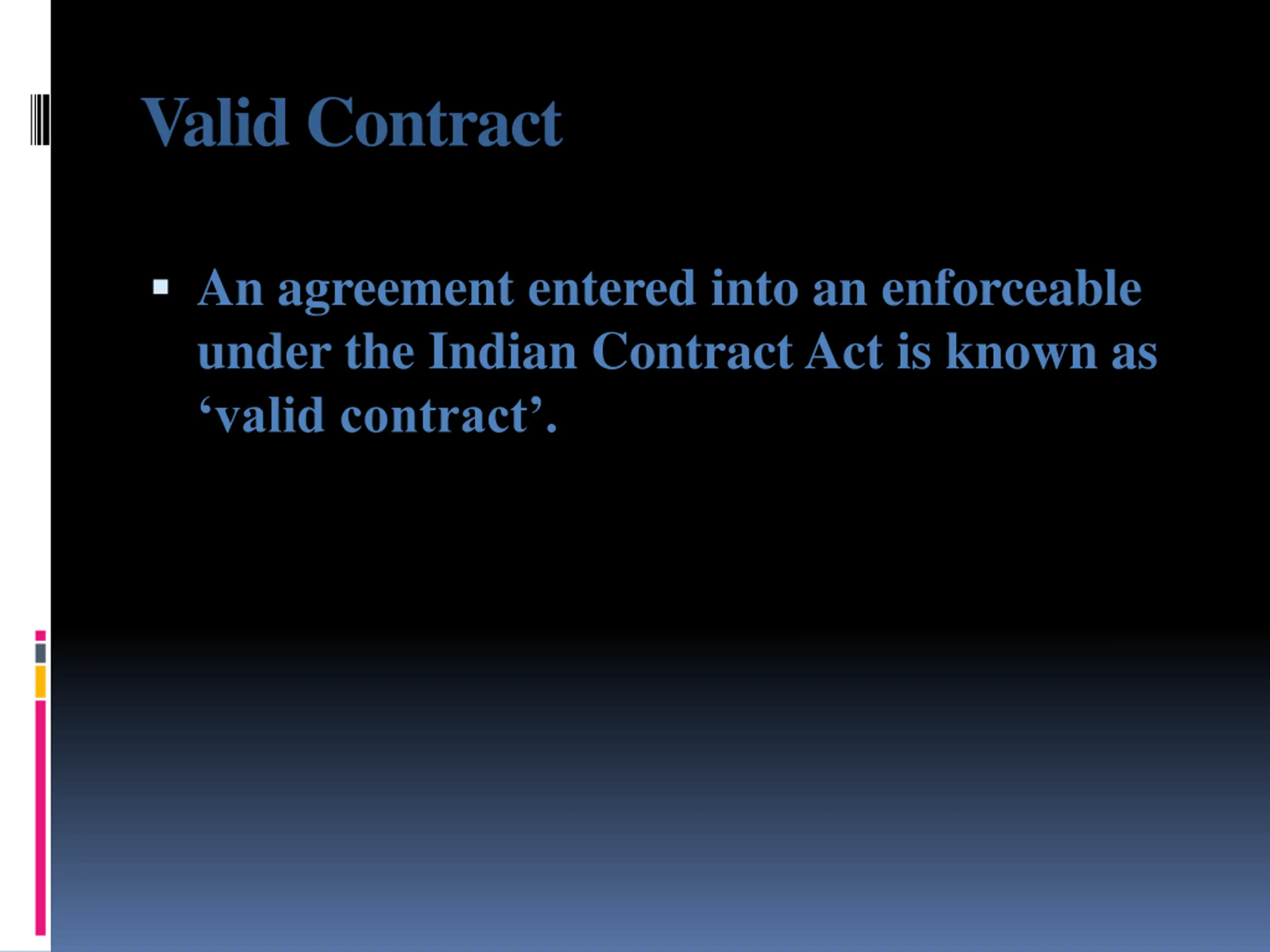 Valid Contract An agreement entered into an enforceable under the Indian Contract Act is known as valid contract .