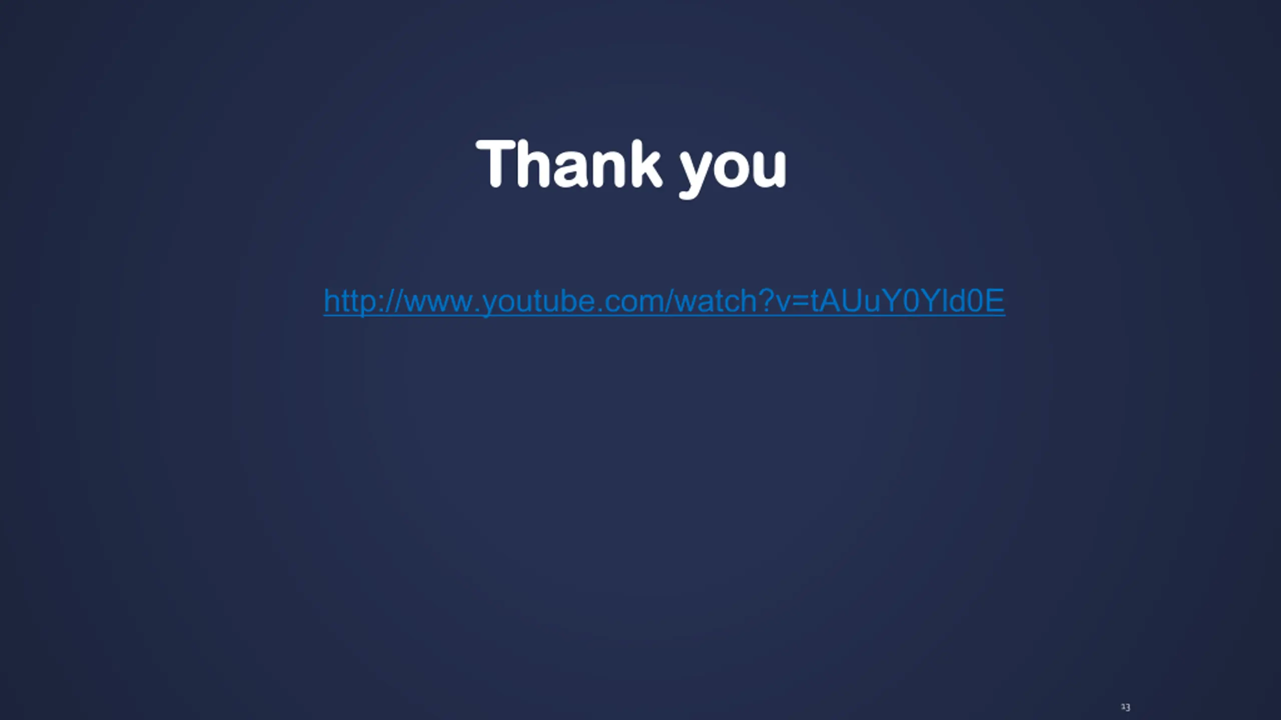 Thank you Thank you http://www.youtube.com/watch?v=tAUuY0Yld0E 13