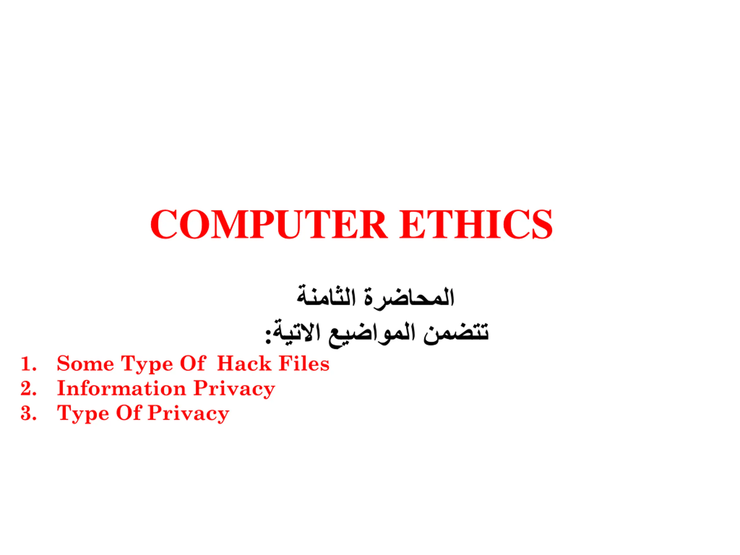 COMPUTER ETHICS : 1. 2. 3. Some Type Of Hack Files Information Privacy Type Of Privacy