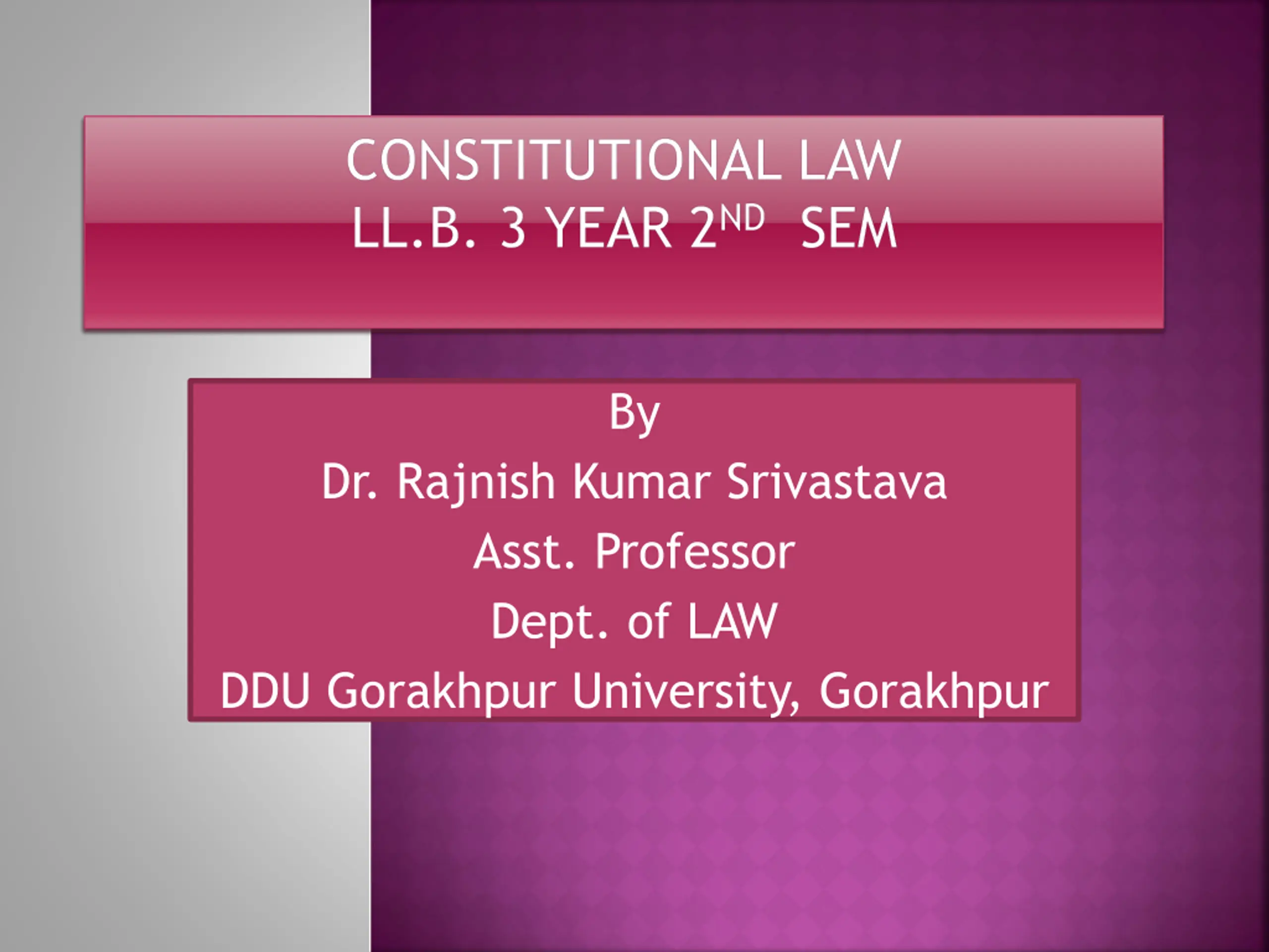 CONSTITUTIONAL LAW LL.B. 3 YEAR 2NDSEM By Dr. Rajnish Kumar Srivastava Asst. Professor Dept. of LAW DDU Gorakhpur University, Gorakhpur