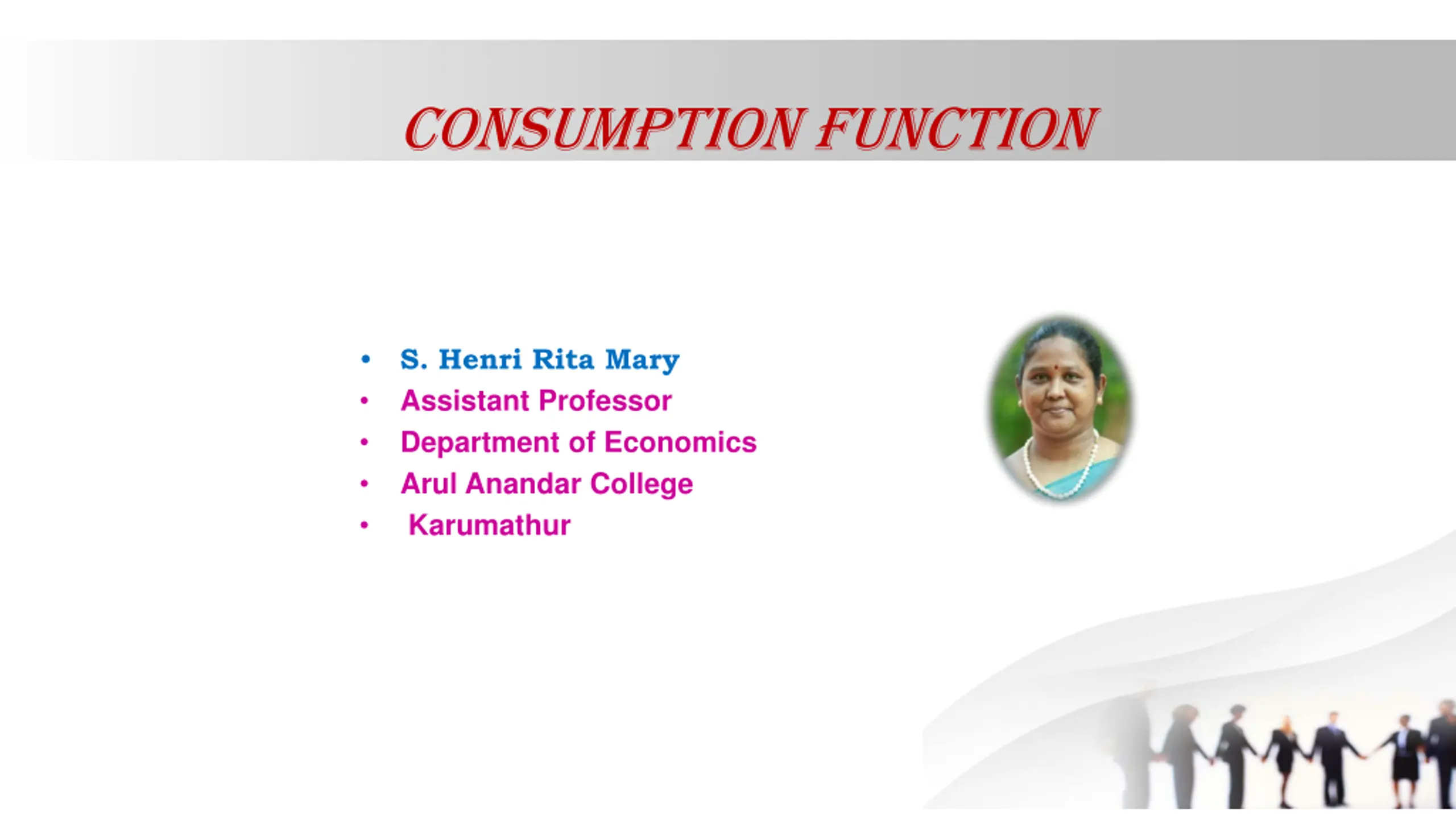 CONSUMPTION FUNCTION S. Henri Rita Mary Assistant Professor Department of Economics Arul Anandar College Karumathur