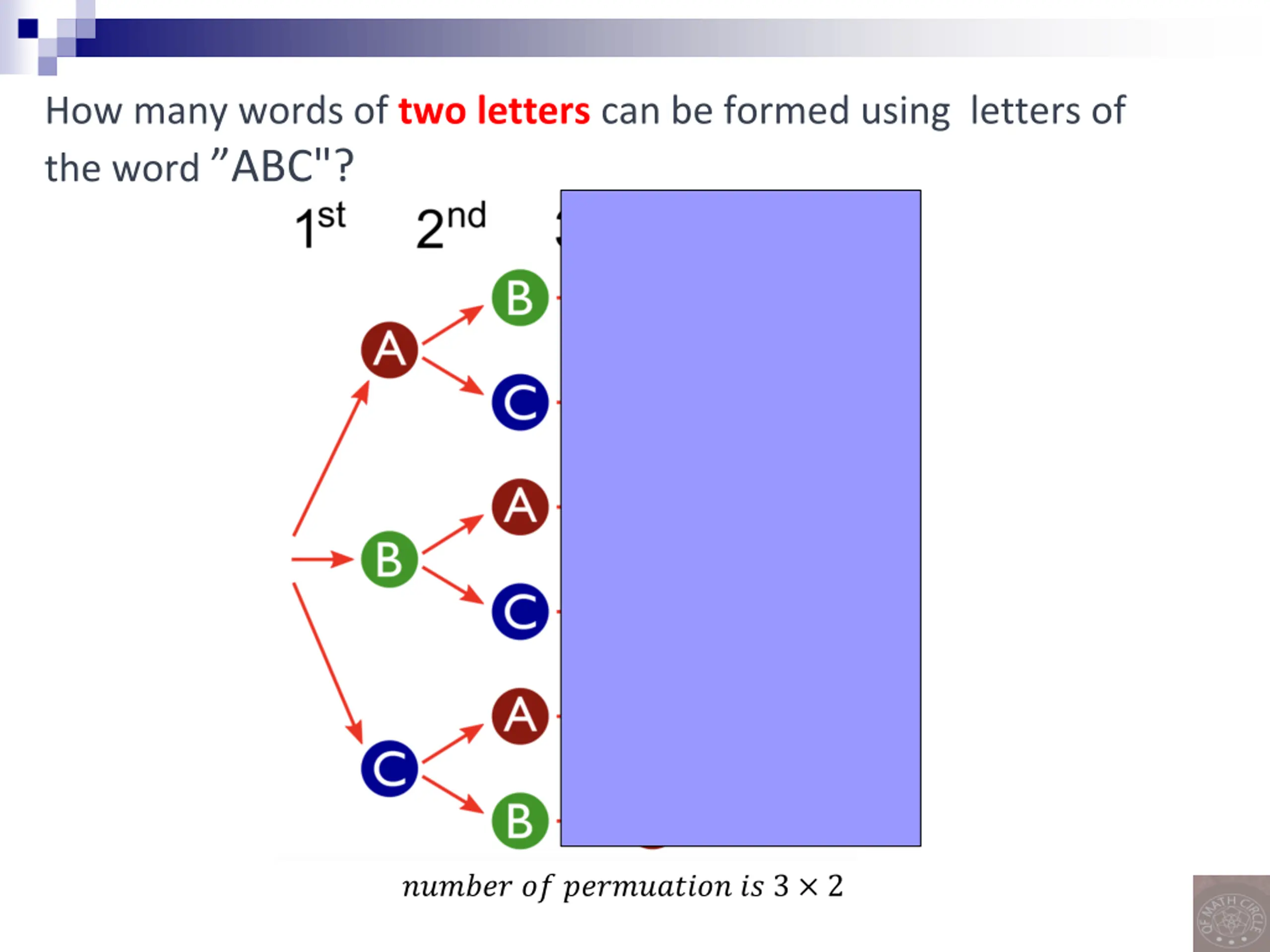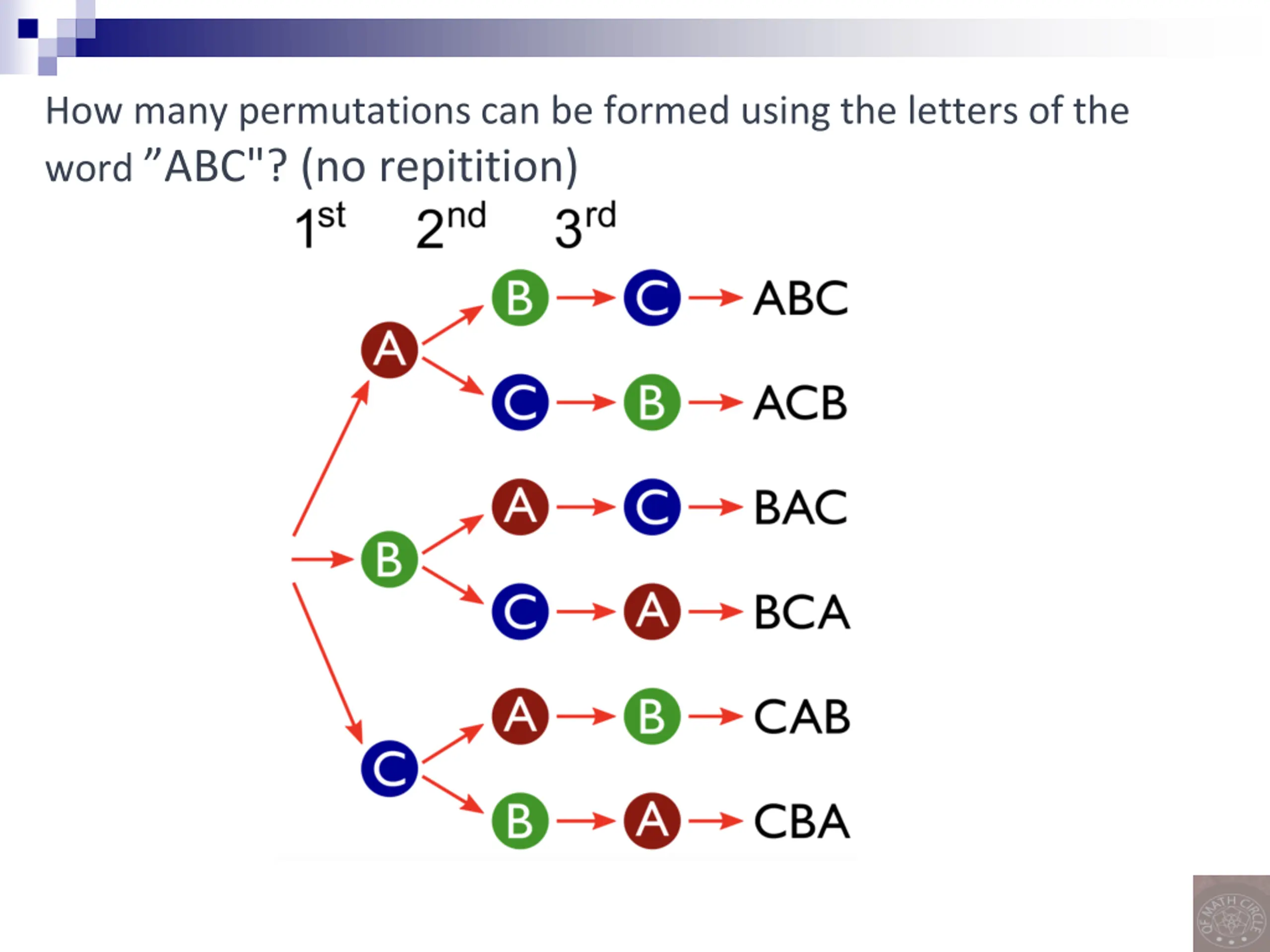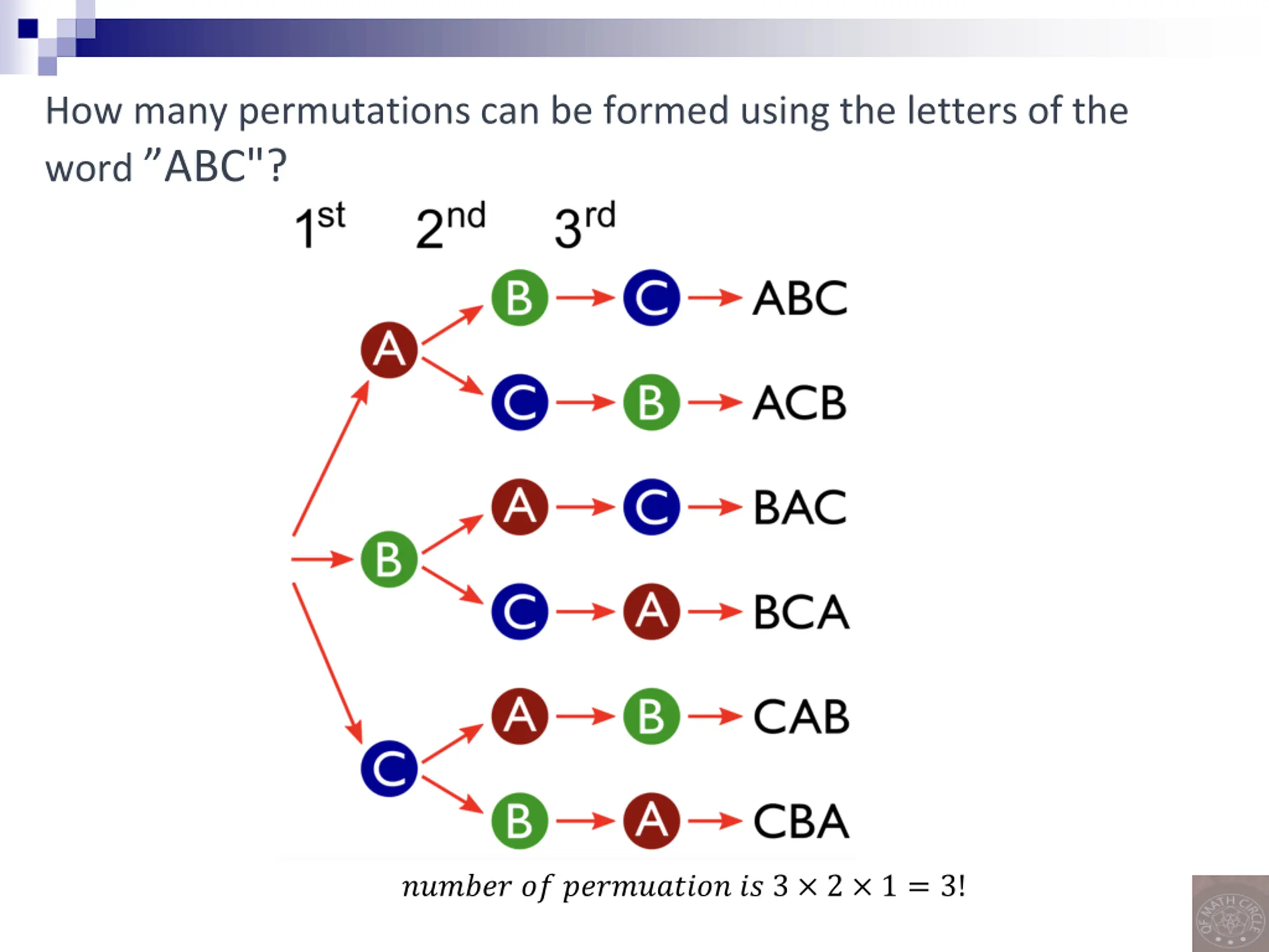 How many permutations can be formed using the letters of the word ABC"? ?????? ?? ?????????? ?? 3 2 1 = 3!