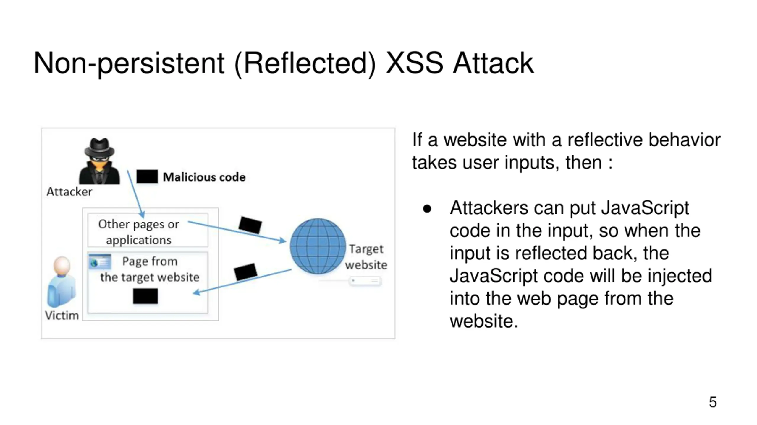 Types of XSS Attacks Non-persistent (Reflected) XSS Attack Persistent (Stored) XSS Attack 4