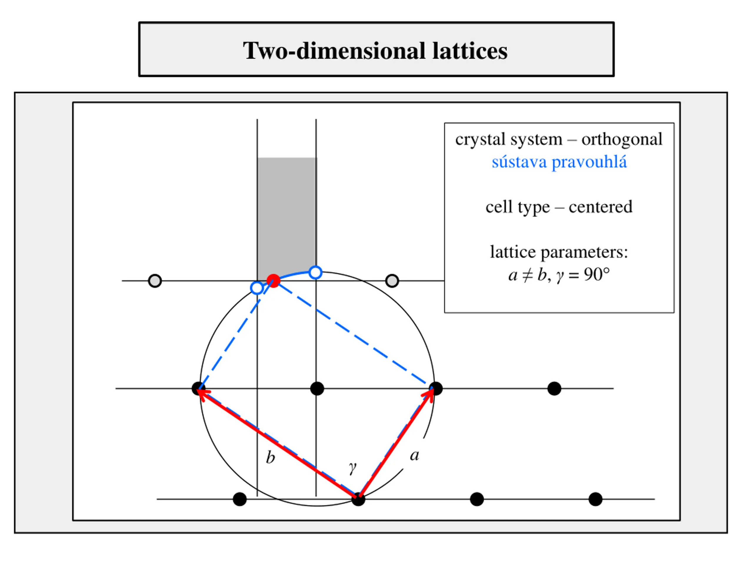 Two-dimensional lattices crystal system orthogonal s stava pravouhl cell type centered lattice parameters: a b, = 90 a b