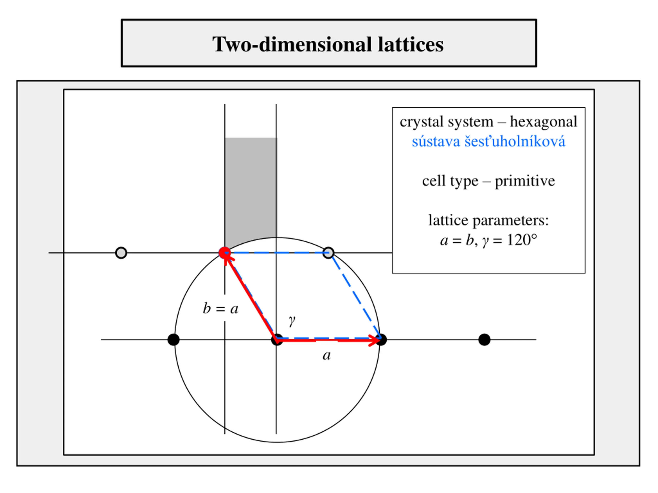 Two-dimensional lattices crystal system hexagonal s stava es uholn kov cell type primitive lattice parameters: a = b, = 120 b = a a