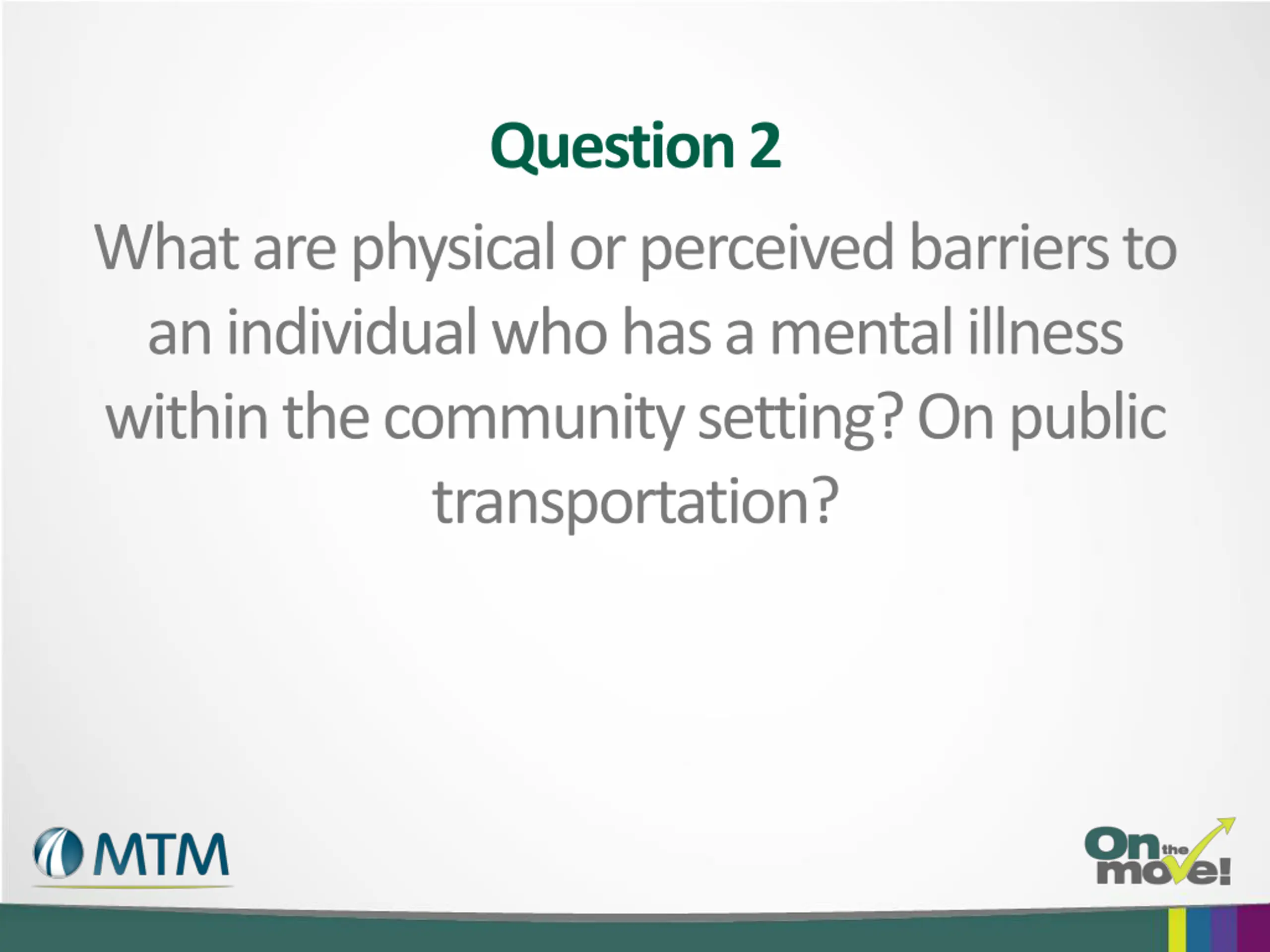 Question 2 What are physical or perceived barriers to an individual who has a mental illness within the community setting? On public transportation?