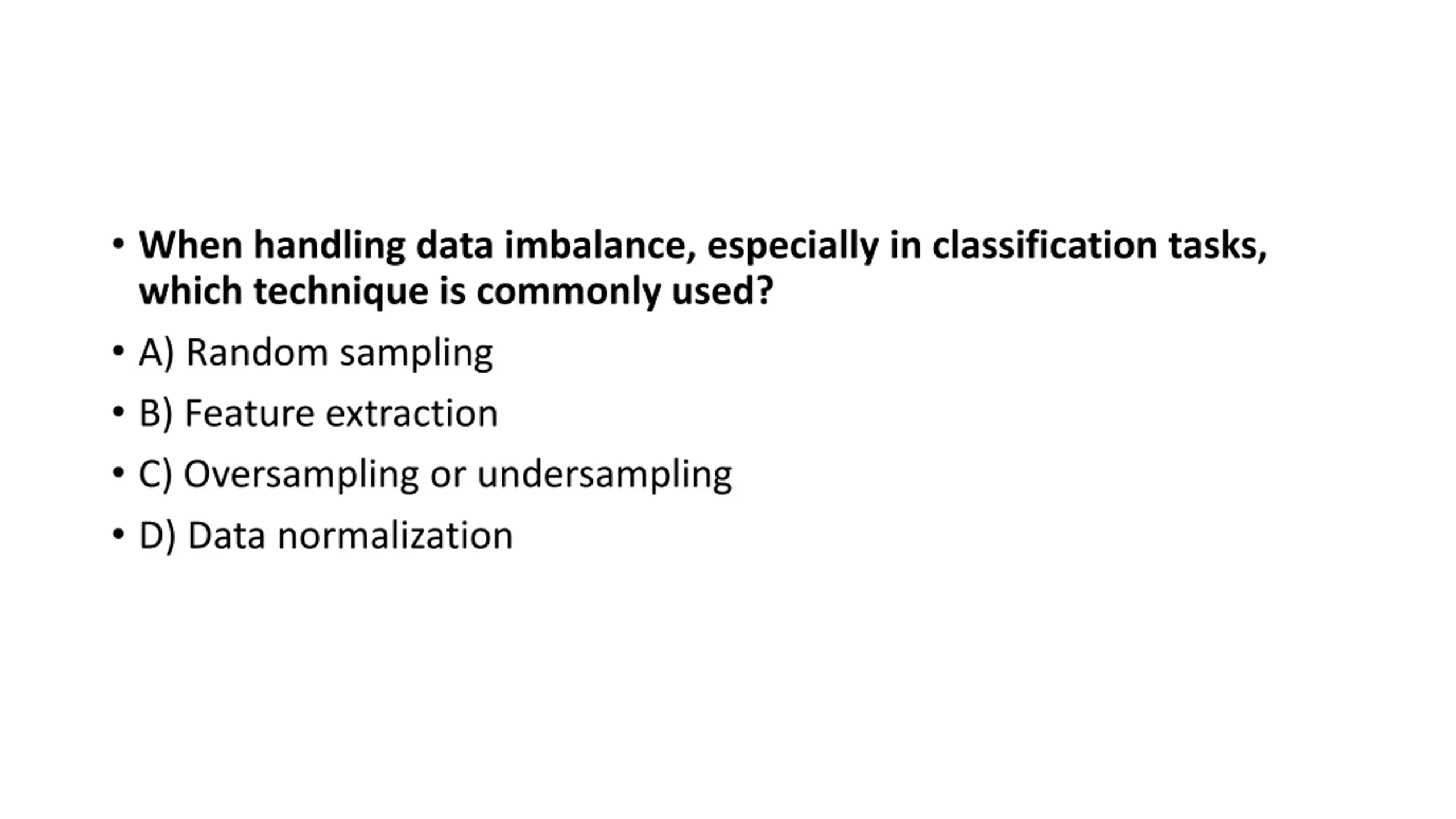 When handling data imbalance, especially in classification tasks, which technique is commonly used? A) Random sampling B) Feature extraction C) Oversampling or undersampling D) Data normalization