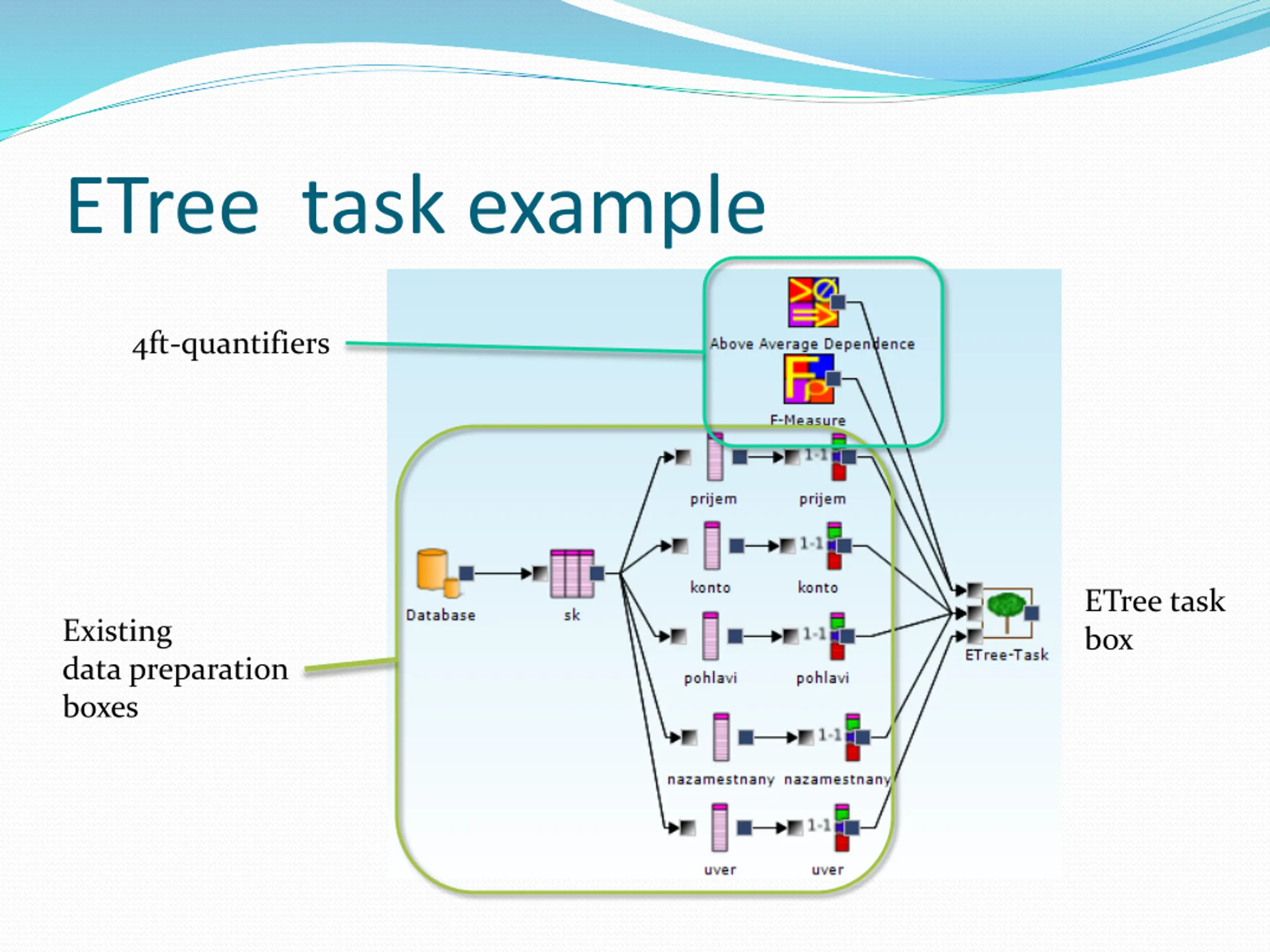 ETree task example 4ft-quantifiers ETree task box Existing data preparation boxes