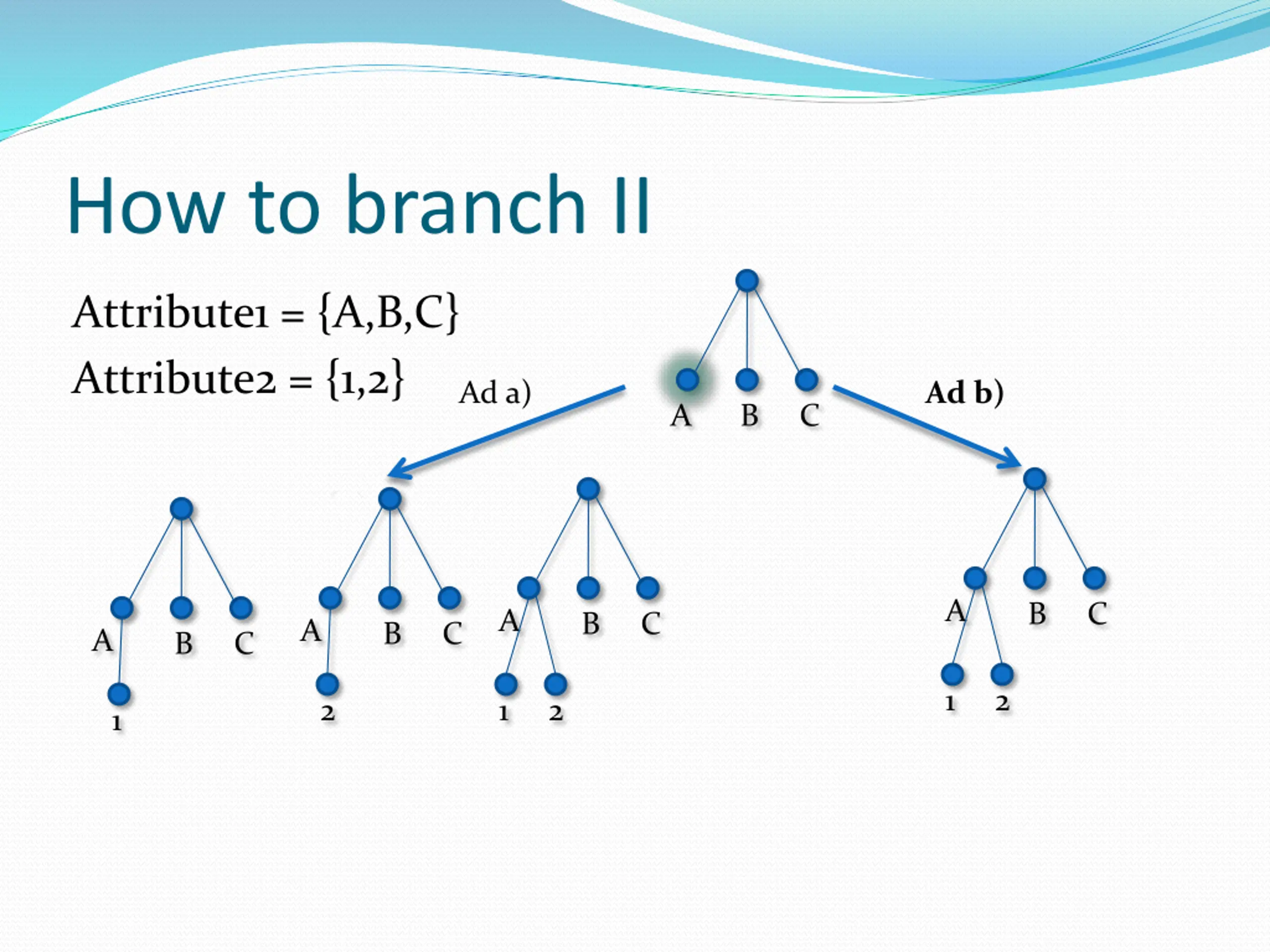 How to branch I Attribute1 = {A,B,C} Attribute2 = {1,2} Ad b) A B C Ad a) A B C A B C A B C A B C A B C