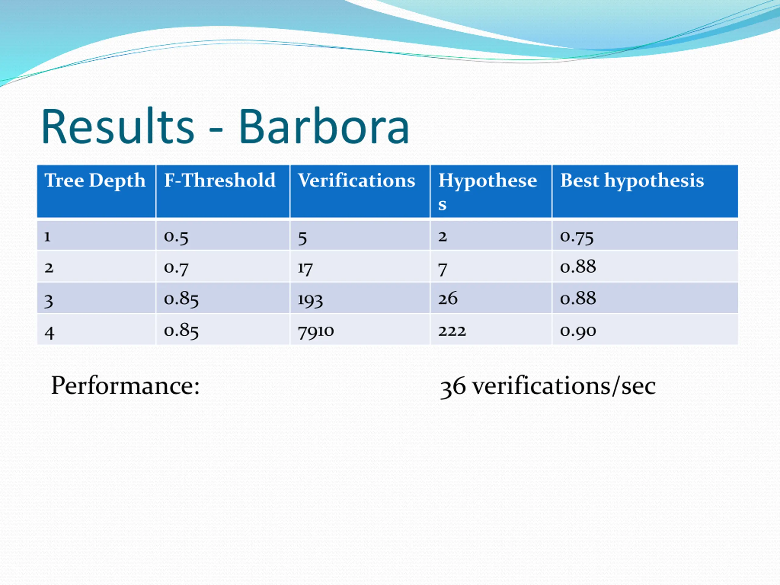 Results - Barbora Tree Depth F-Threshold Verifications Hypothese s Best hypothesis 1 0.5 5 2 0.75 2 0.7 17 7 0.88 3 0.85 193 26 0.88 4 0.85 7910 222 0.90 Performance: 36 verifications/sec