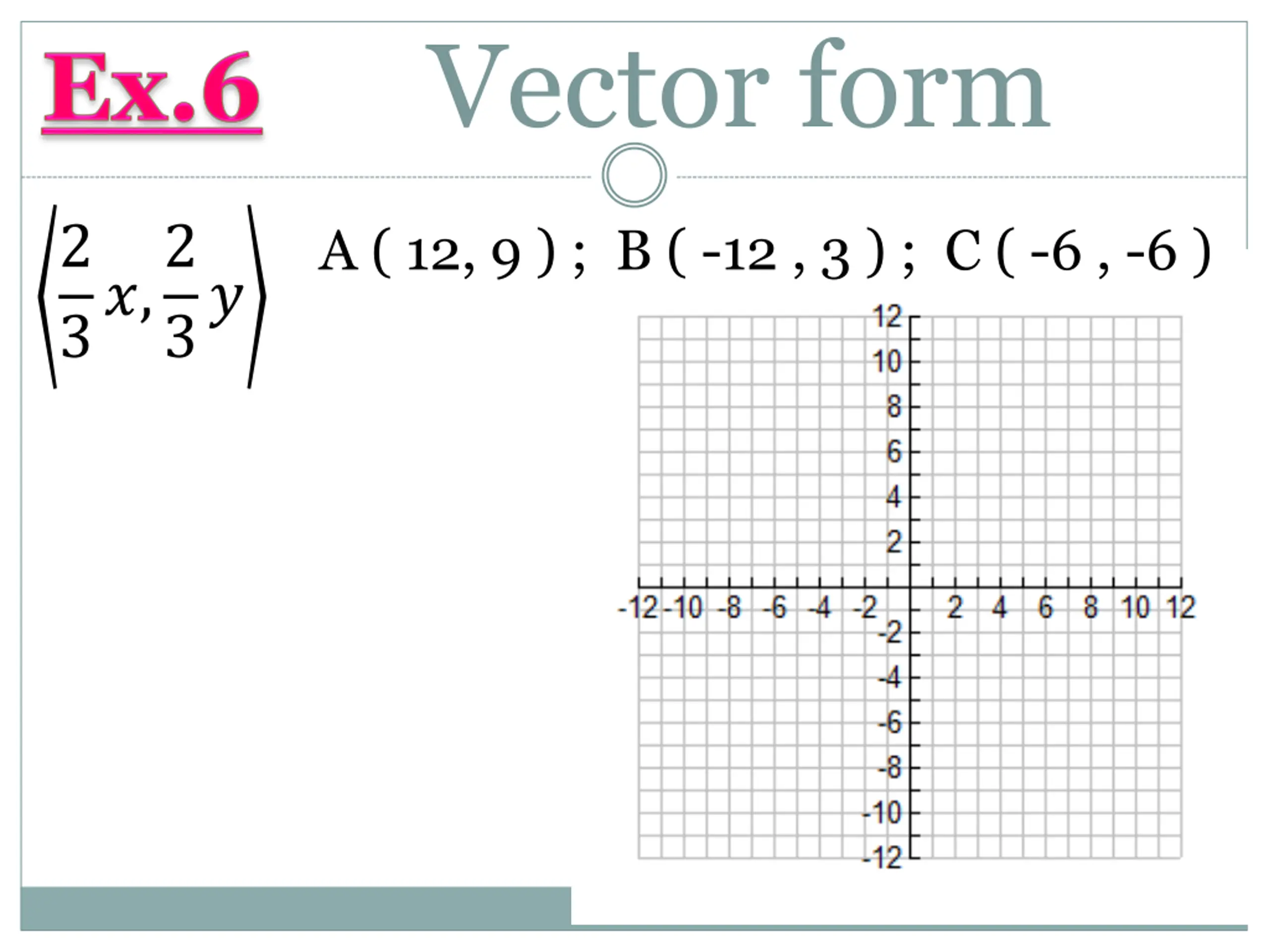 Vector form 2 3?,2 A ( 12, 9 ) ; B ( -12 , 3 ) ; C ( -6 , -6 ) 3?