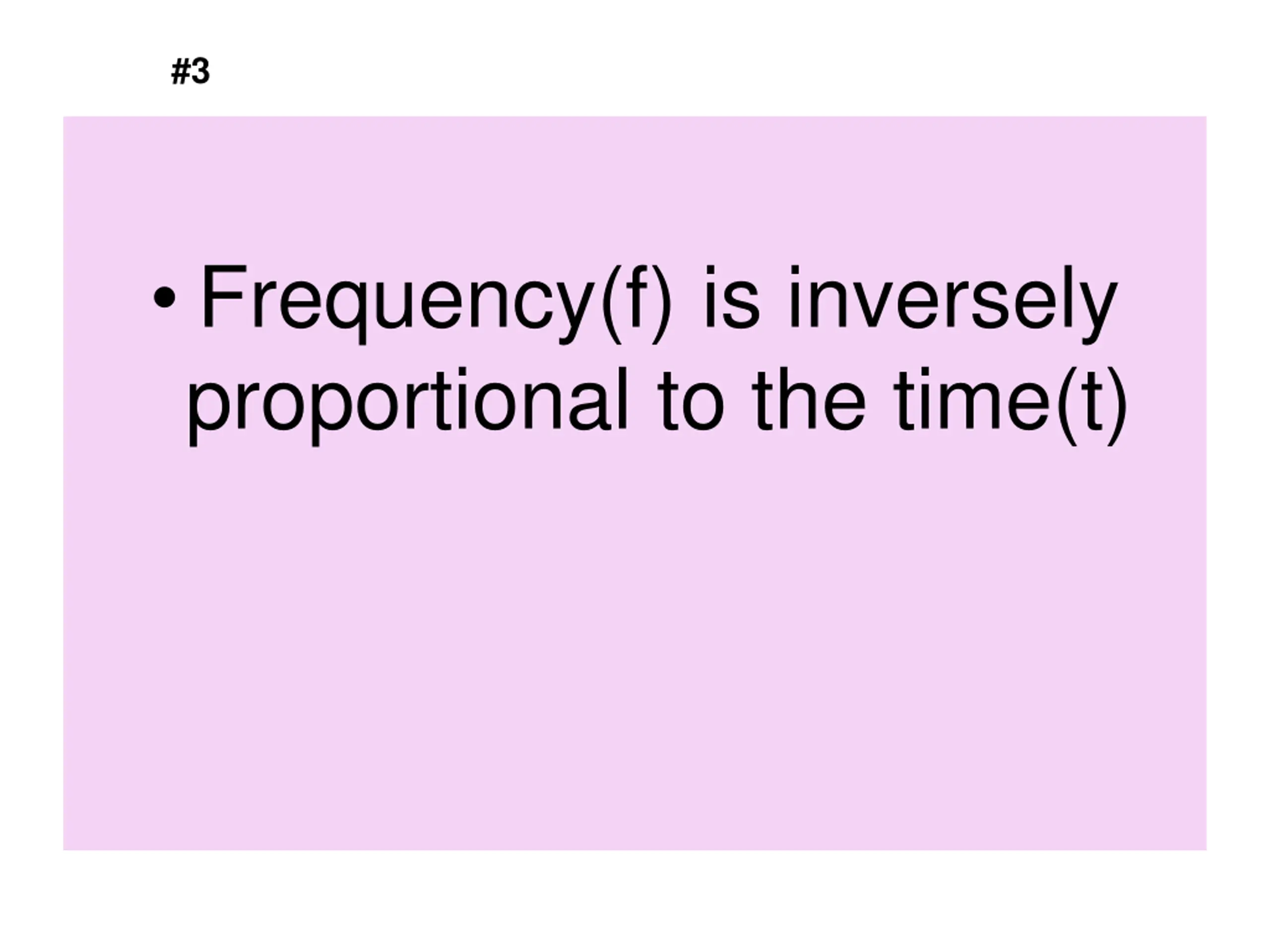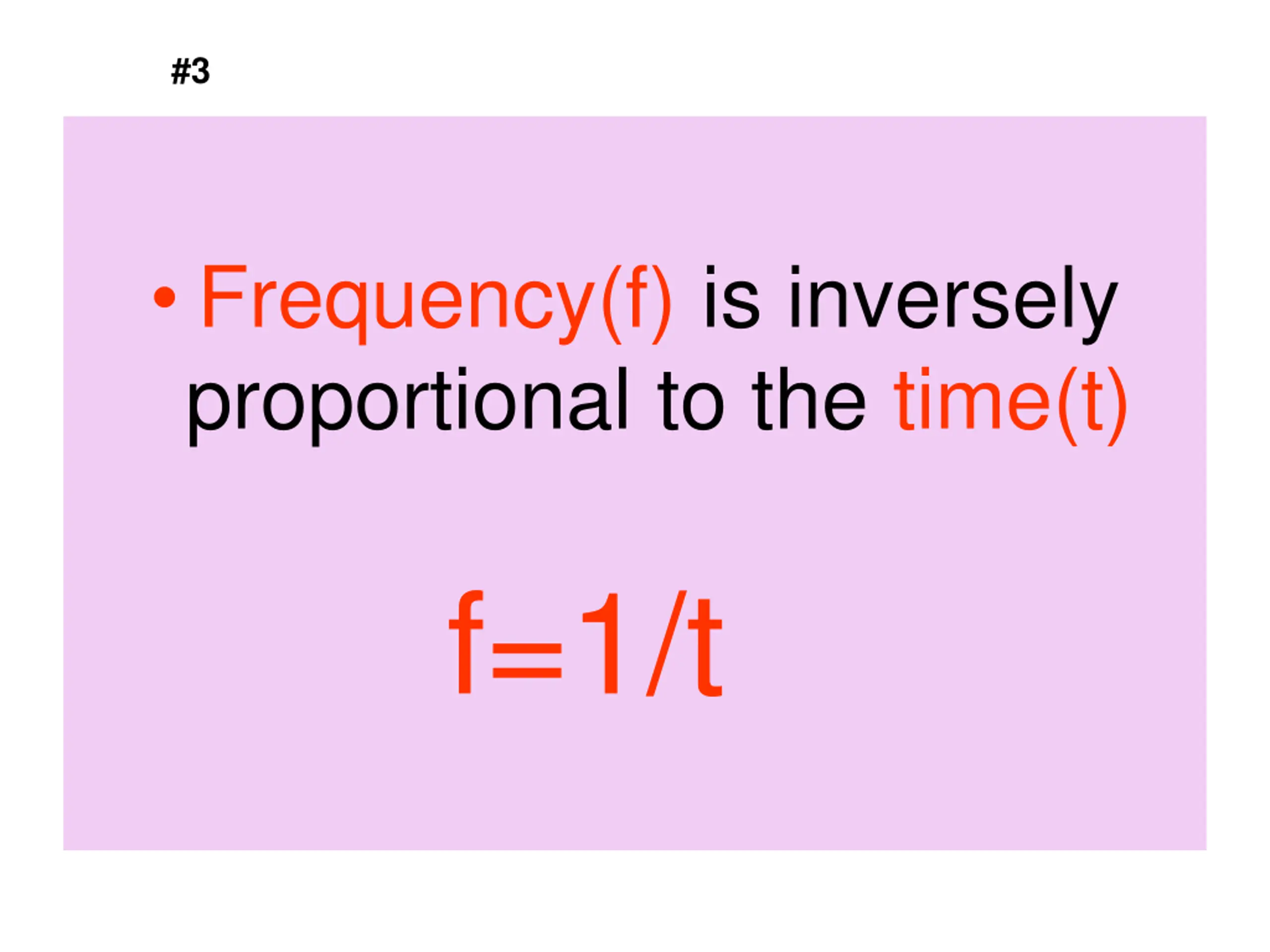 #3 Frequency(f) is inversely proportional to the time(t) f=1/t