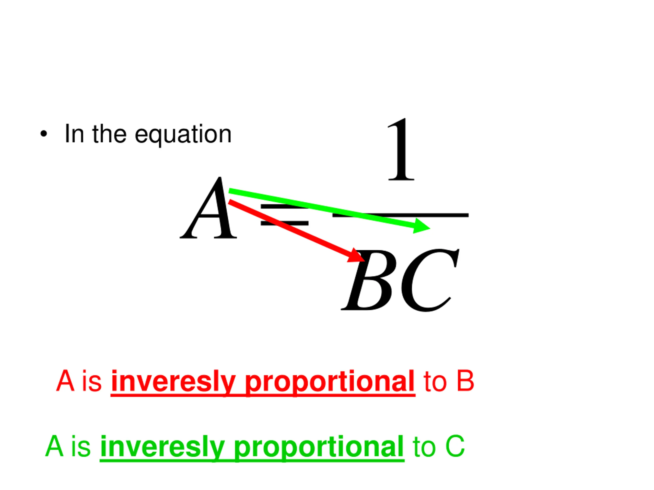1 In the equation = A BC A is inveresly proportional to B A is inveresly proportional to C