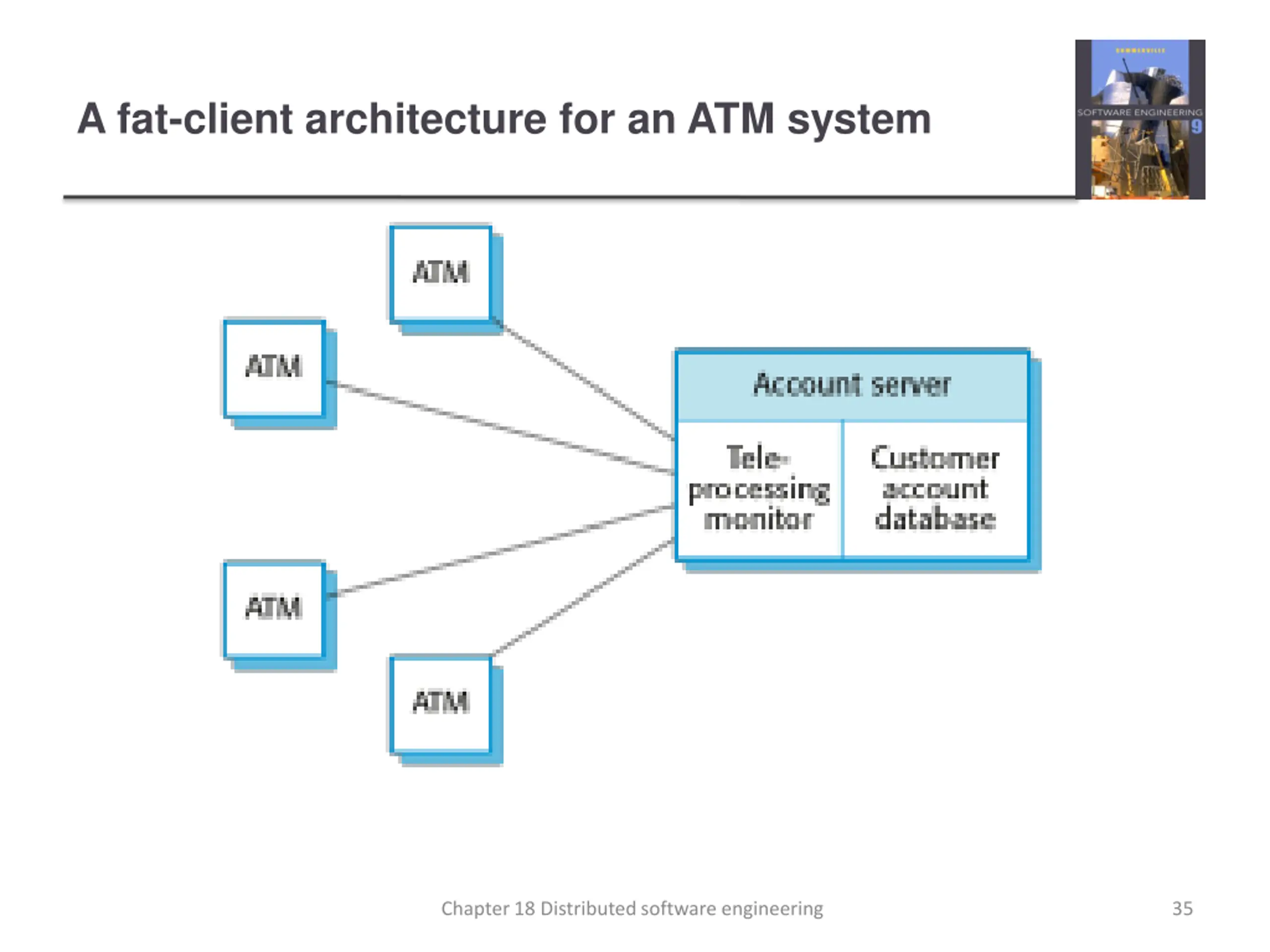 A fat-client architecture for an ATM system Chapter 18 Distributed software engineering 35