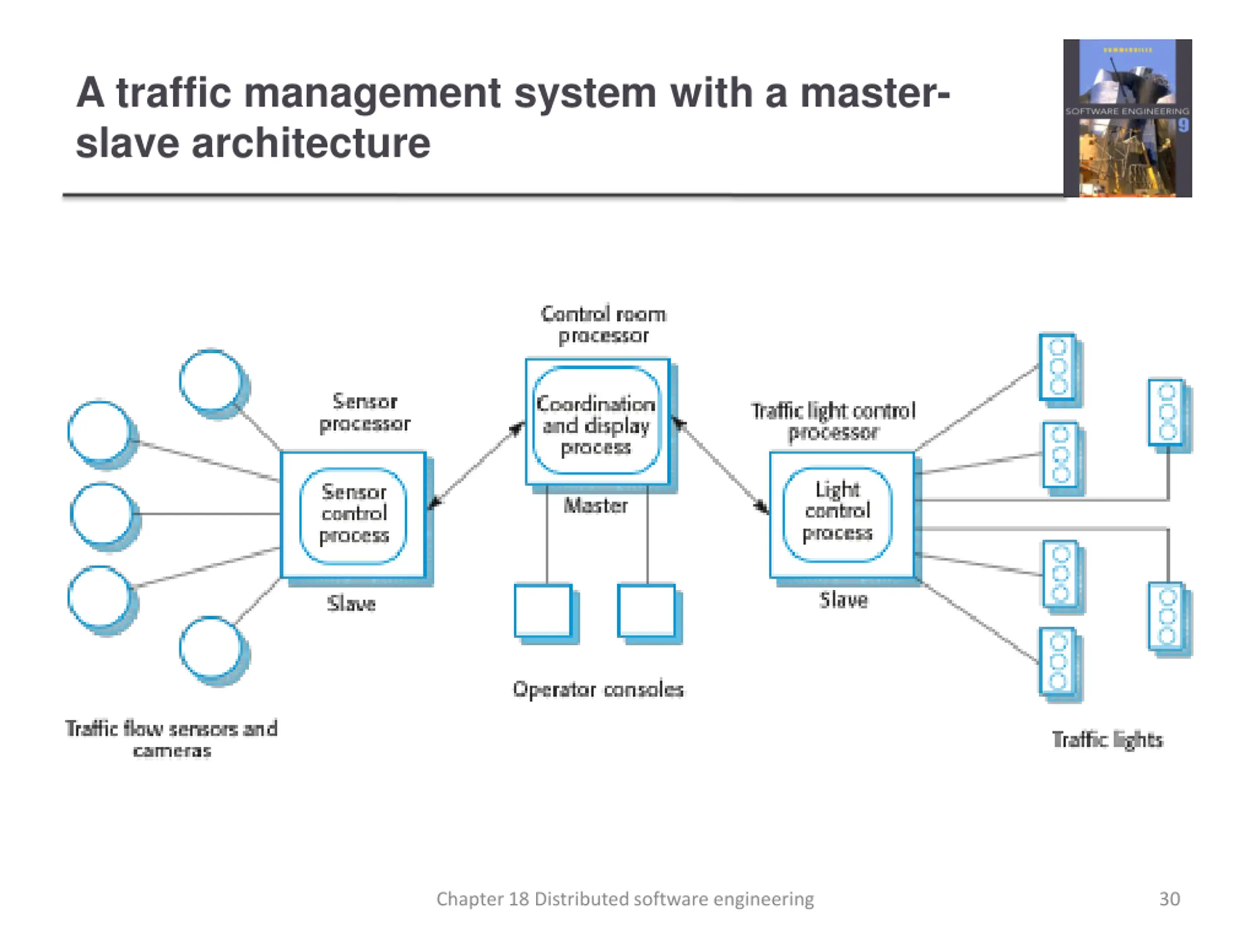 A traffic management system with a master- slave architecture Chapter 18 Distributed software engineering 30