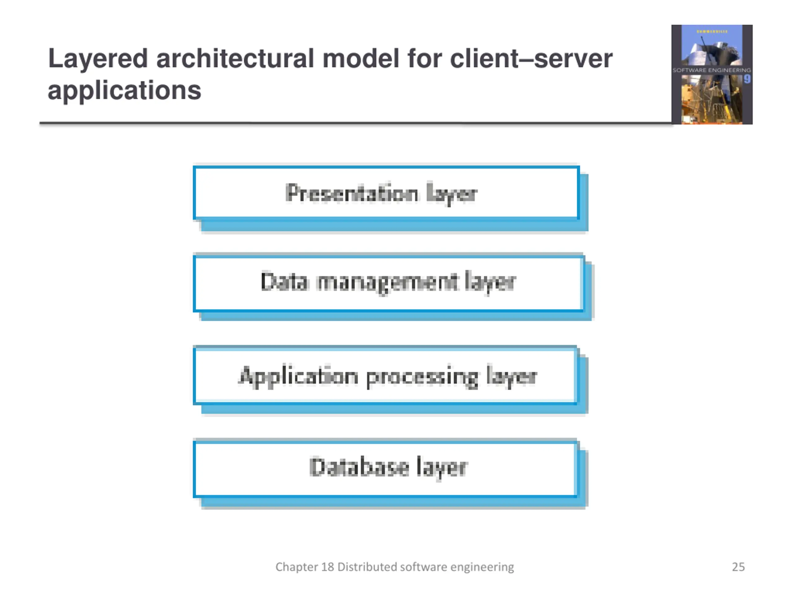 Layered architectural model for clientserver applications Chapter 18 Distributed software engineering 25