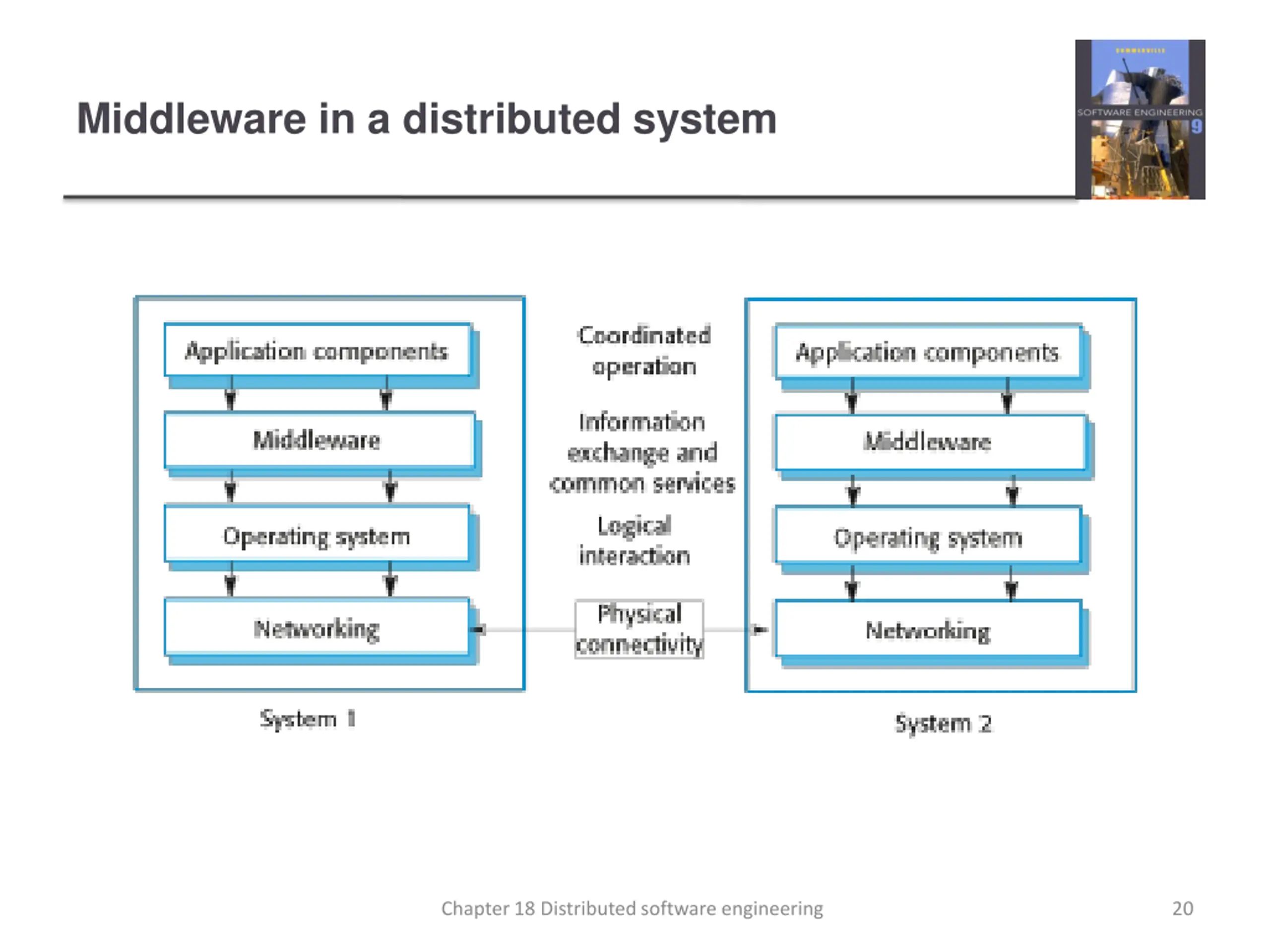 Middleware in a distributed system Chapter 18 Distributed software engineering 20