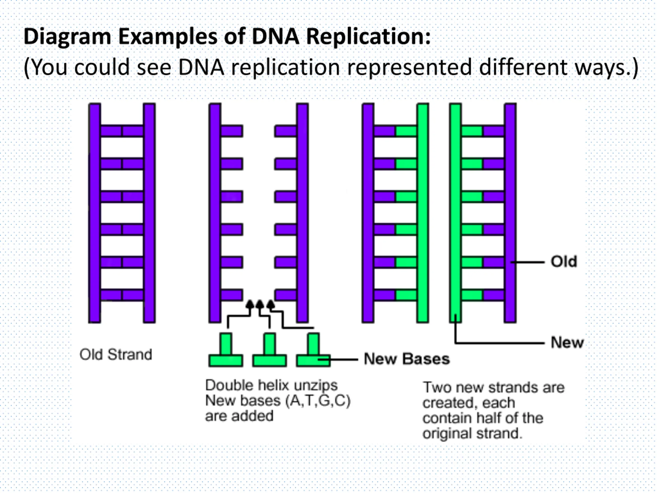 Diagram Examples of DNA Replication: (You could see DNA replication represented different ways.)