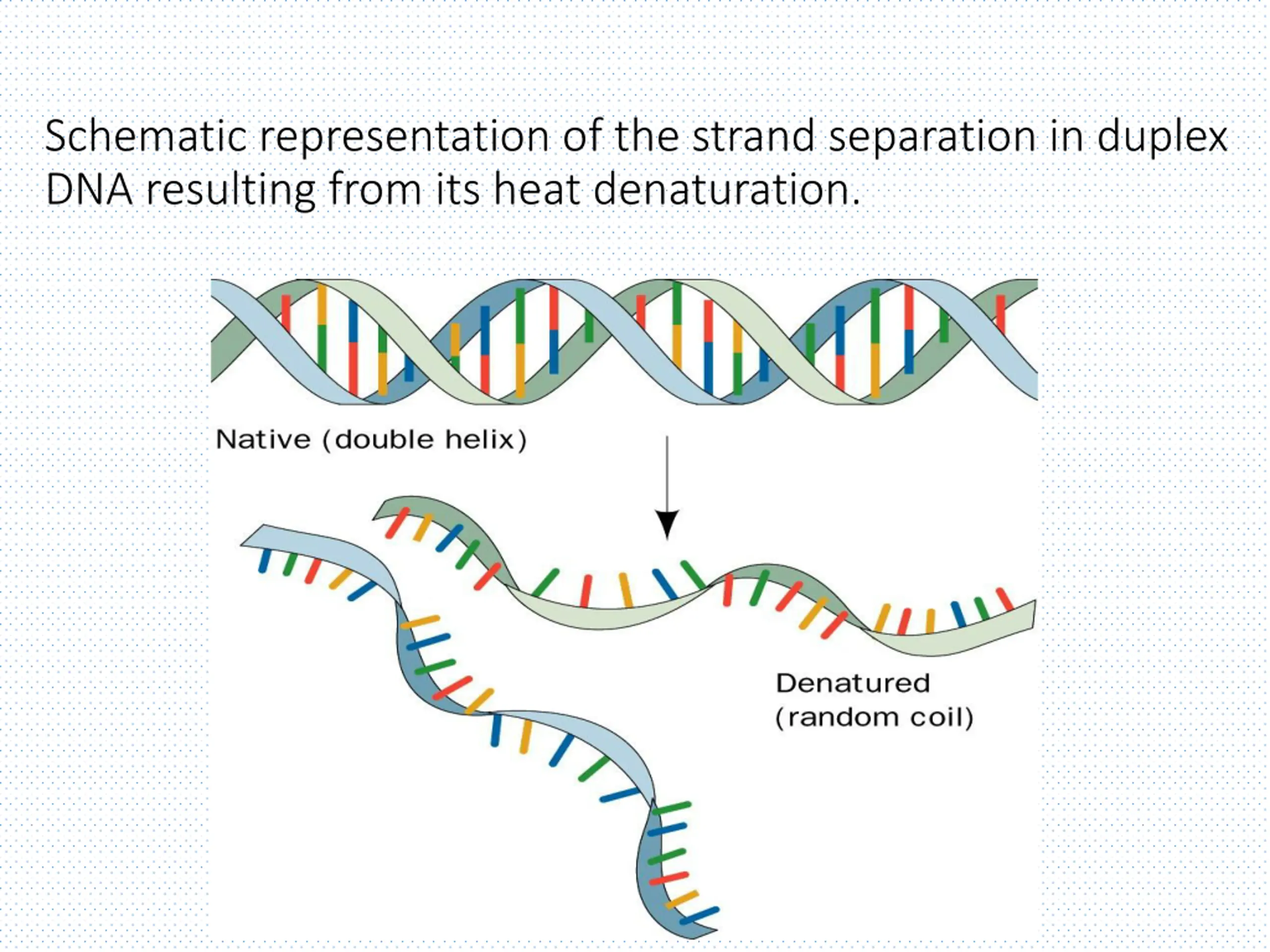 Schematic representation of the strand separation in duplex DNA resulting from its heat denaturation.