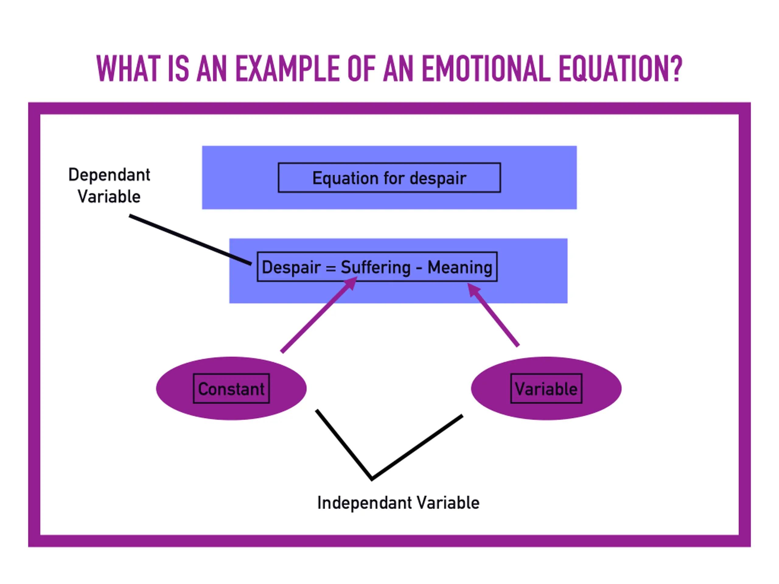WHAT IS AN EXAMPLE OF AN EMOTIONAL EQUATION? Dependant Variable Equation for despair Despair = Suffering - Meaning Constant Variable Independant Variable
