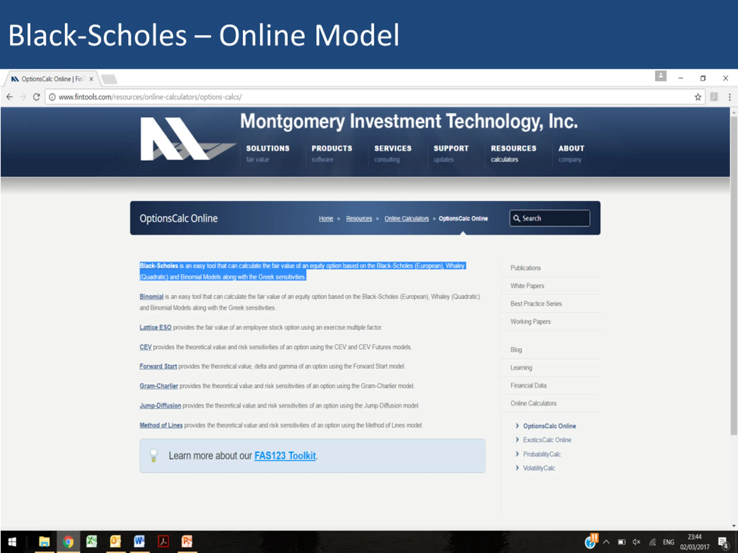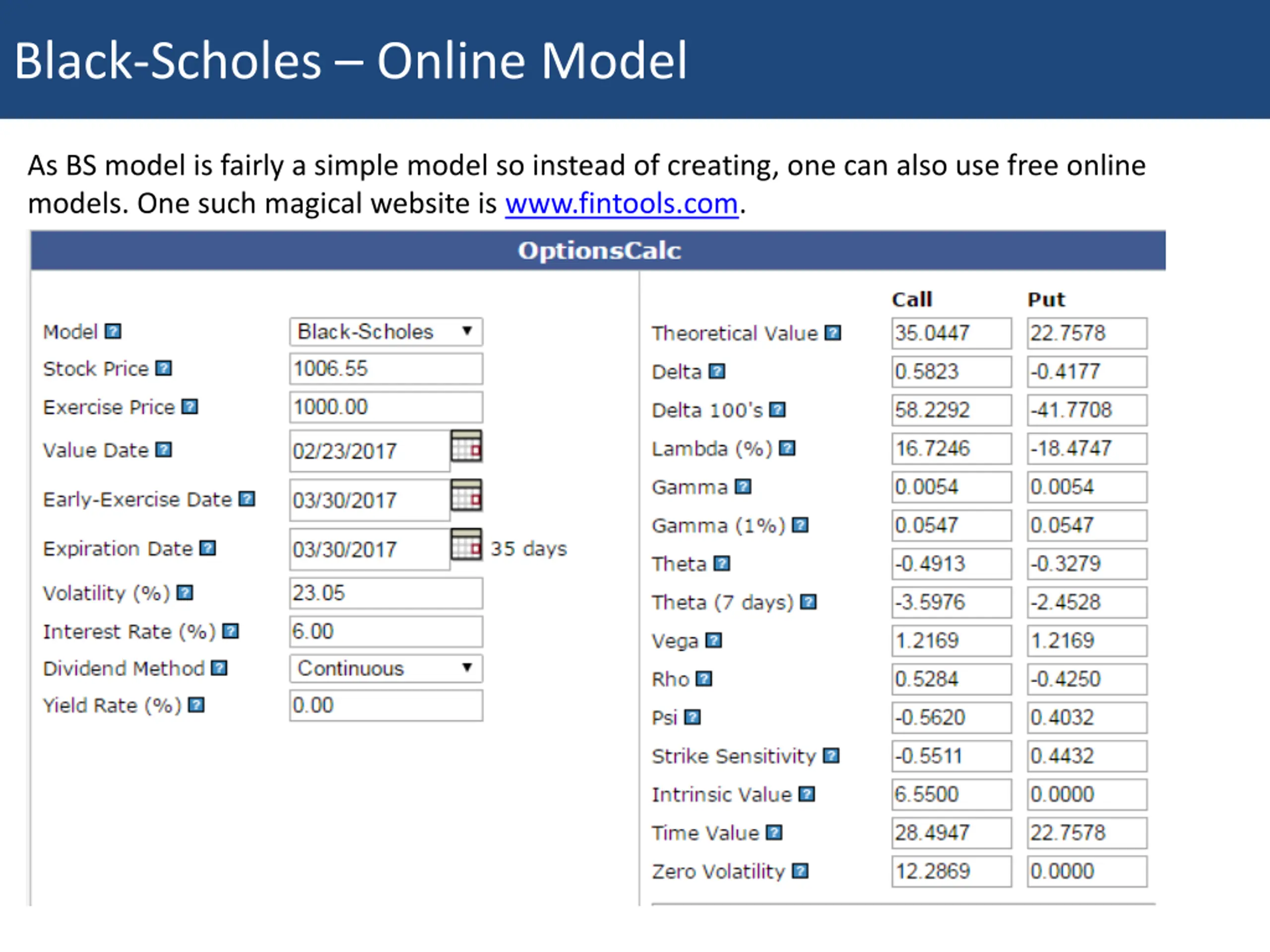Black-Scholes Online Model As BS model is fairly a simple model so instead of creating, one can also use free online models. One such magical website is www.fintools.com.