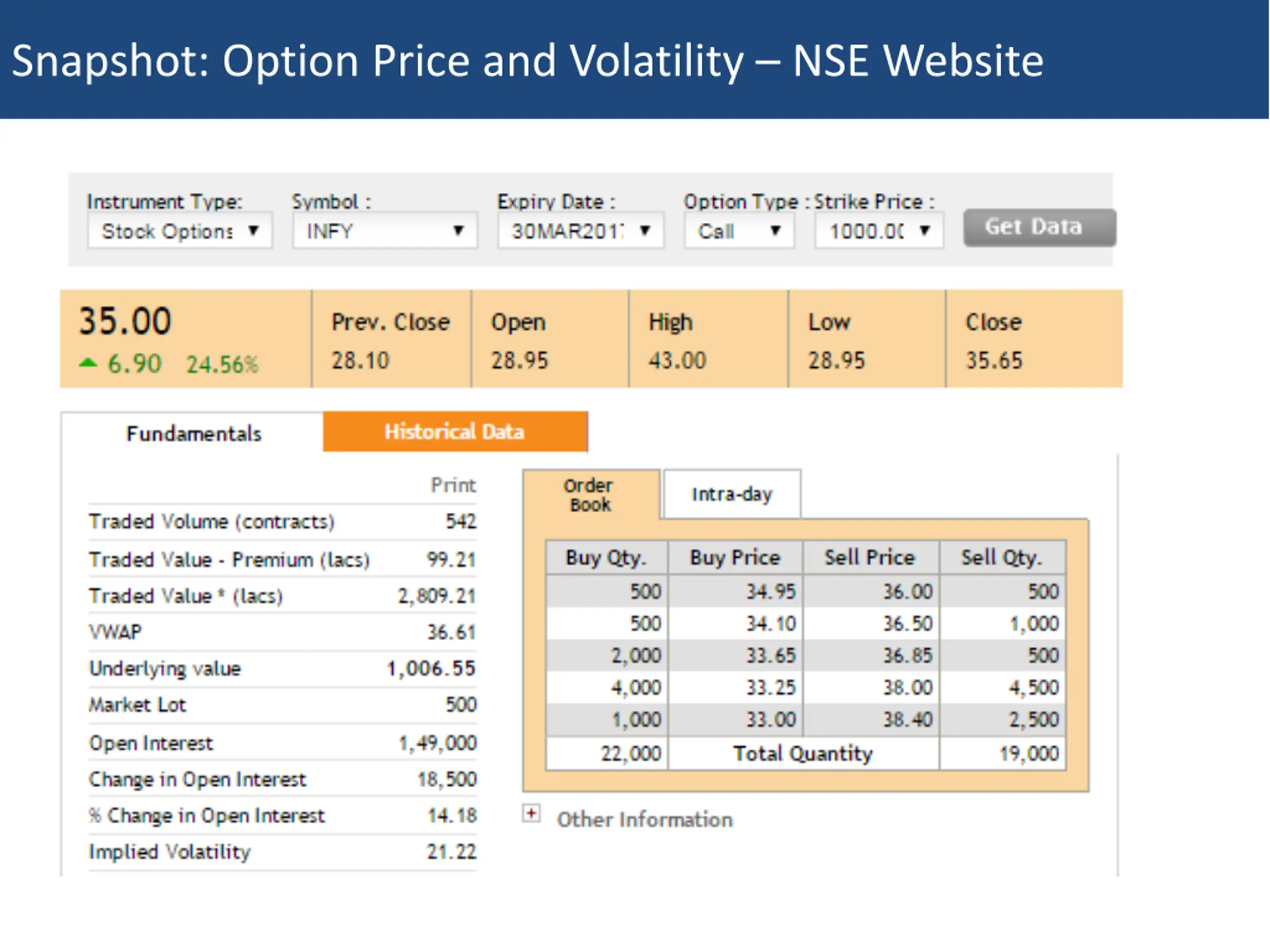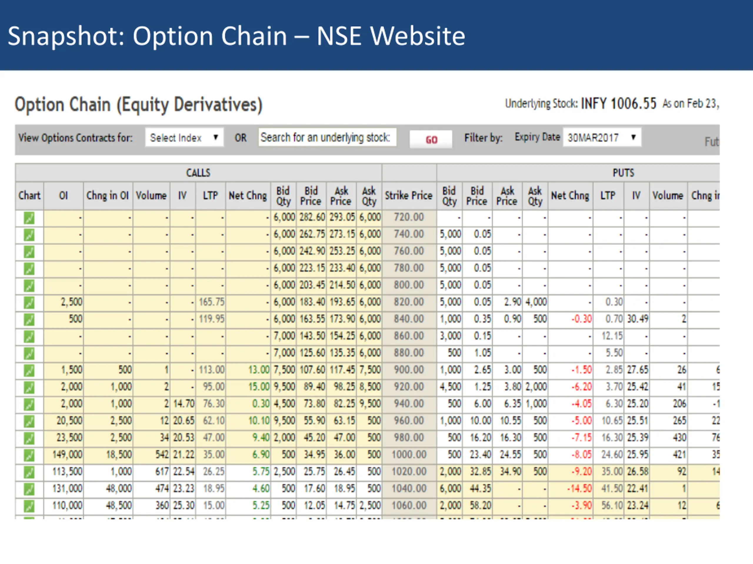 Snapshot 2 (Option prices at different strike prices) Snapshot: Option Chain NSE Website