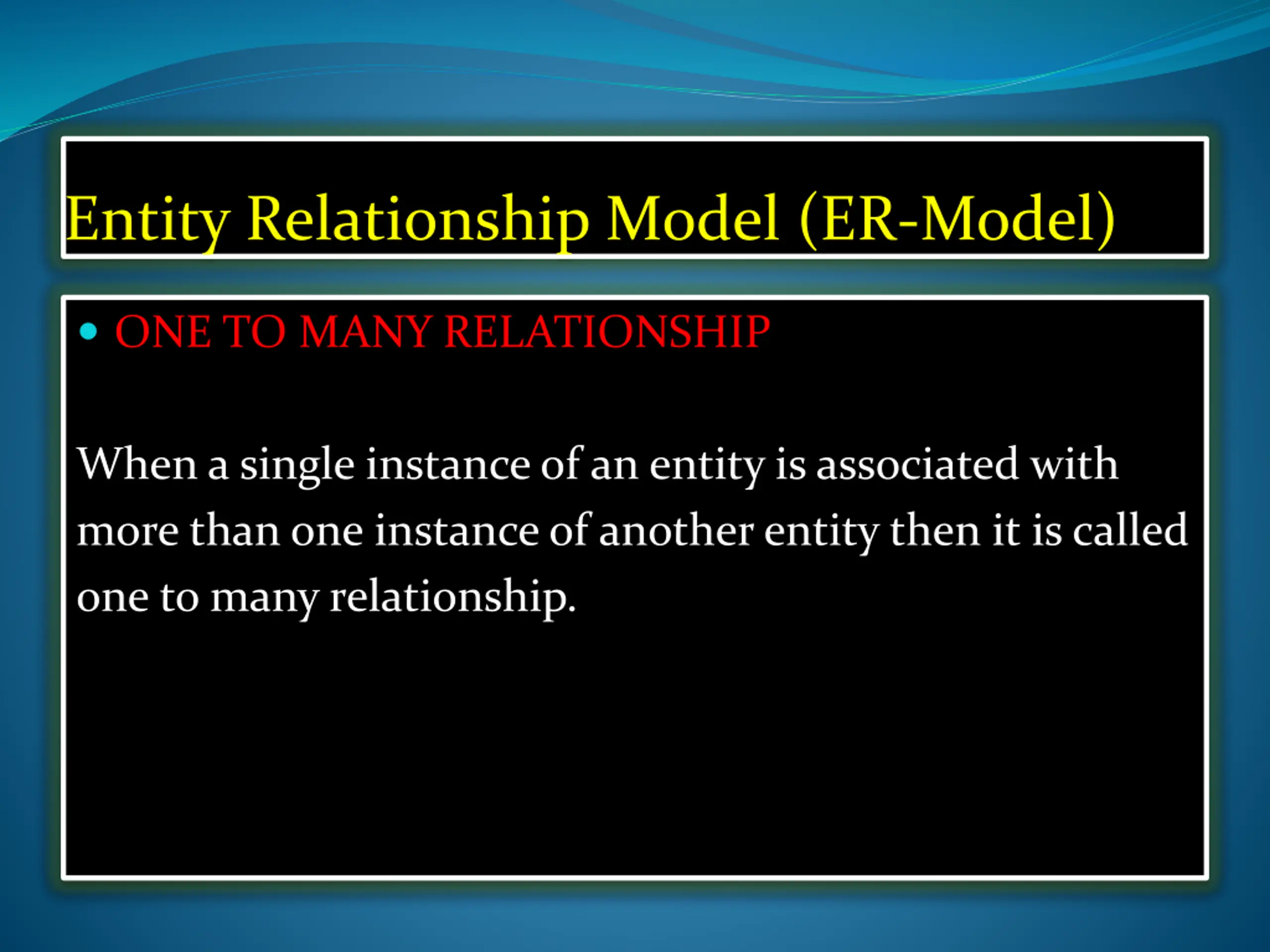 Entity Relationship Model (ER-Model) ONE TO MANY RELATIONSHIP When a single instance of an entity is associated with more than one instance of another entity then it is called one to many relationship.