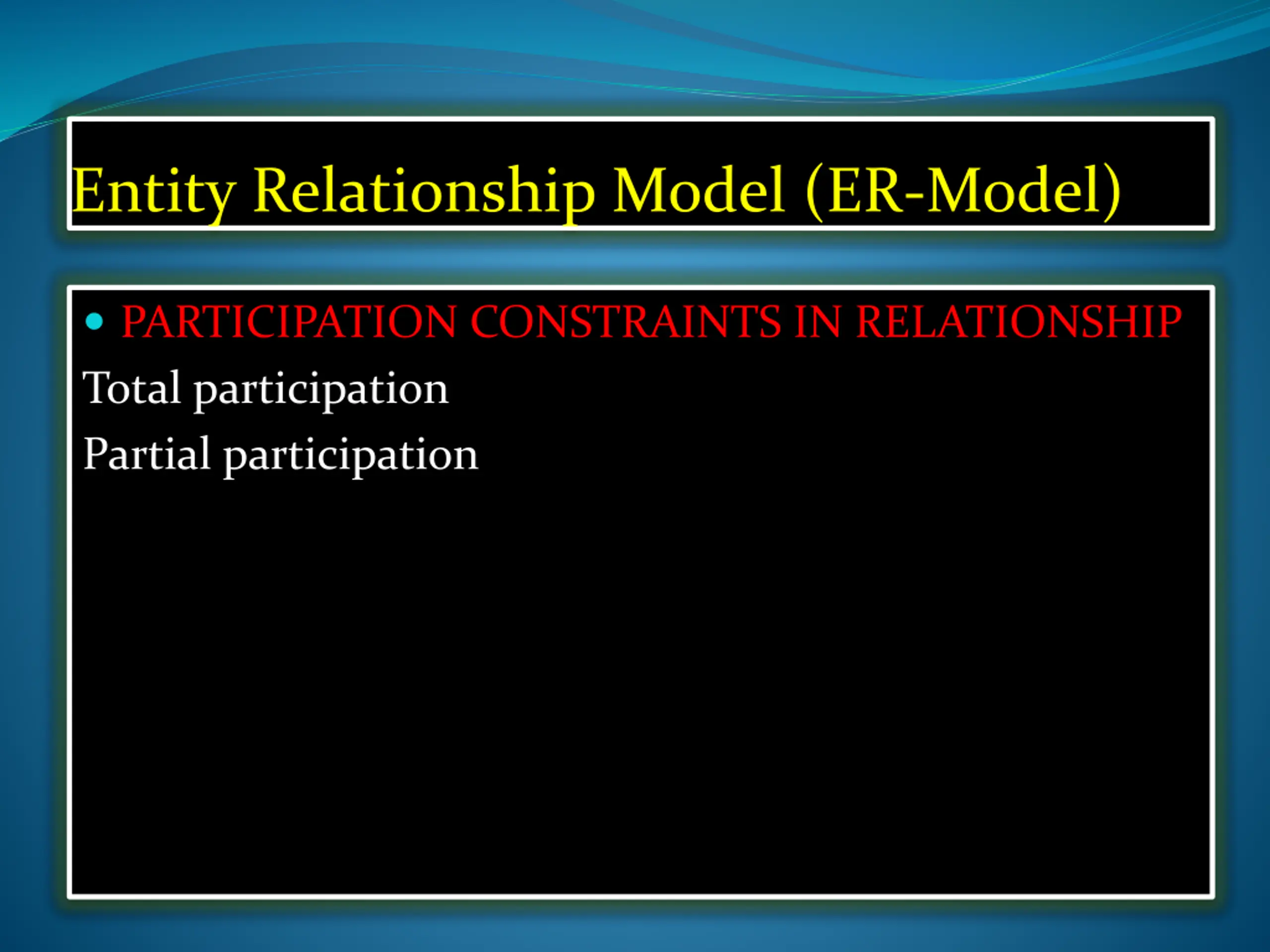 Entity Relationship Model (ER-Model) PARTICIPATION CONSTRAINTS IN RELATIONSHIP Total participation Partial participation