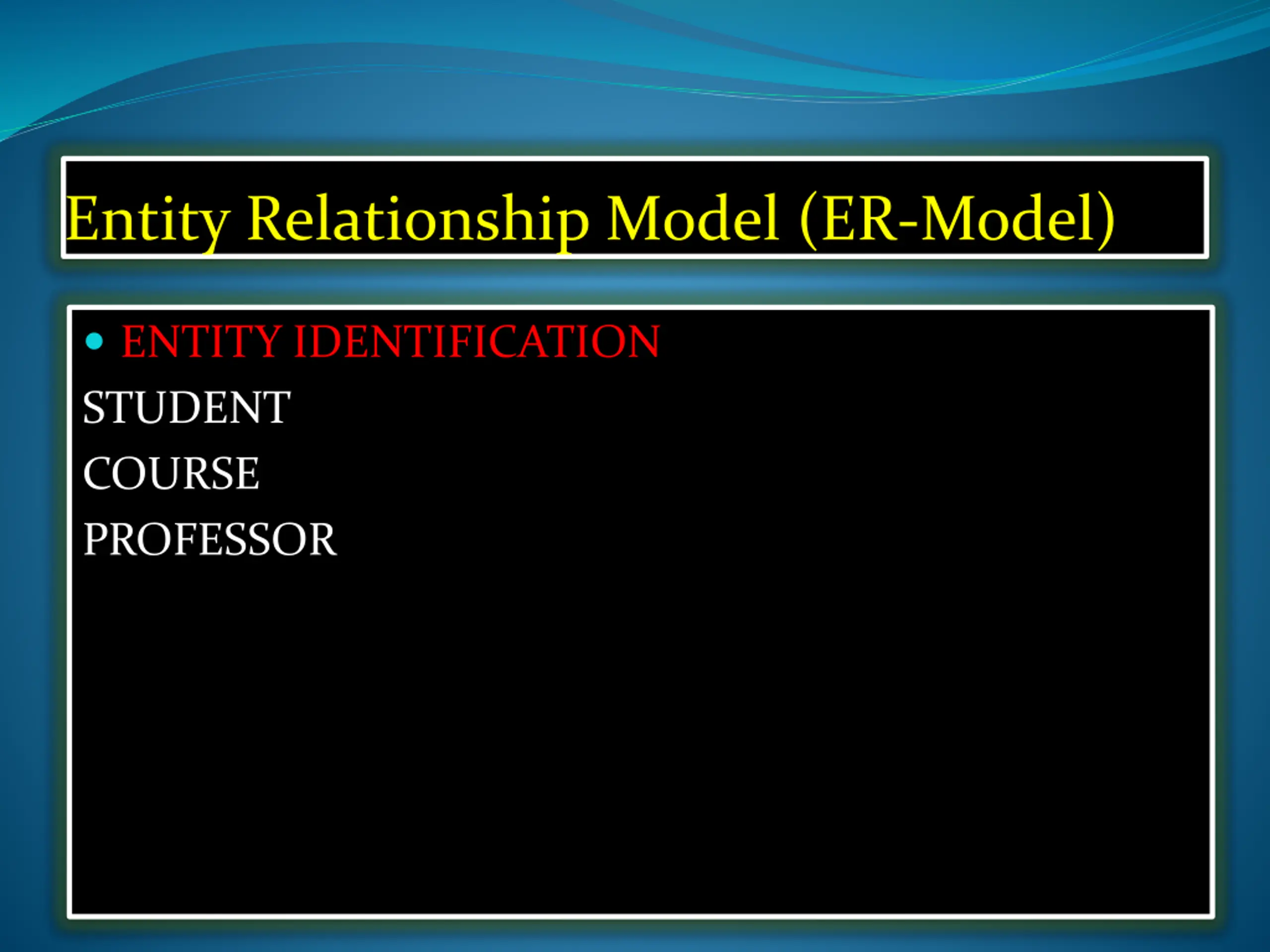 Entity Relationship Model (ER-Model) ENTITY IDENTIFICATION STUDENT COURSE PROFESSOR