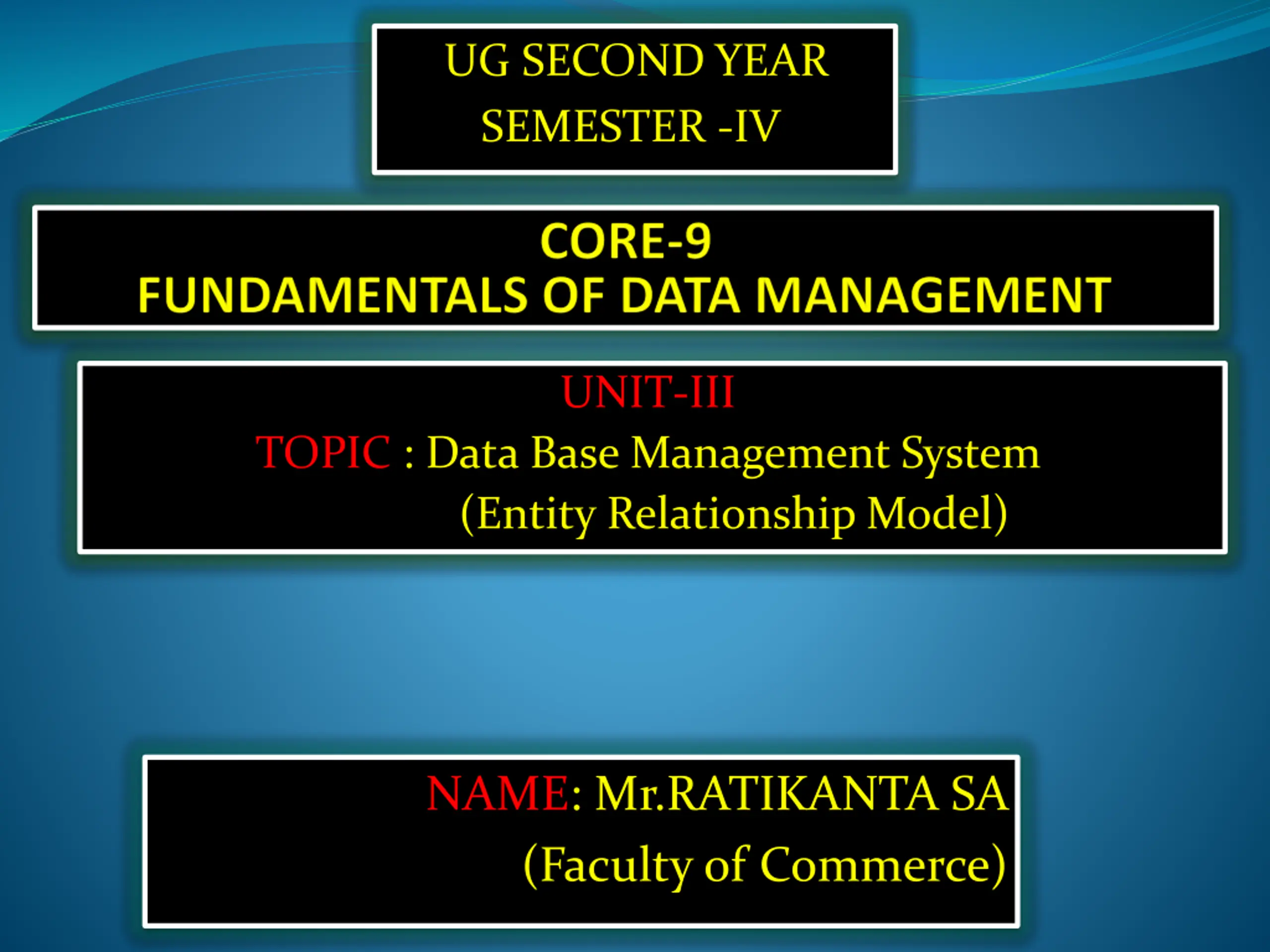 UG SECOND YEAR SEMESTER -IV UNIT-III TOPIC : Data Base Management System (Entity Relationship Model) NAME: Mr.RATIKANTA SA (Faculty of Commerce)