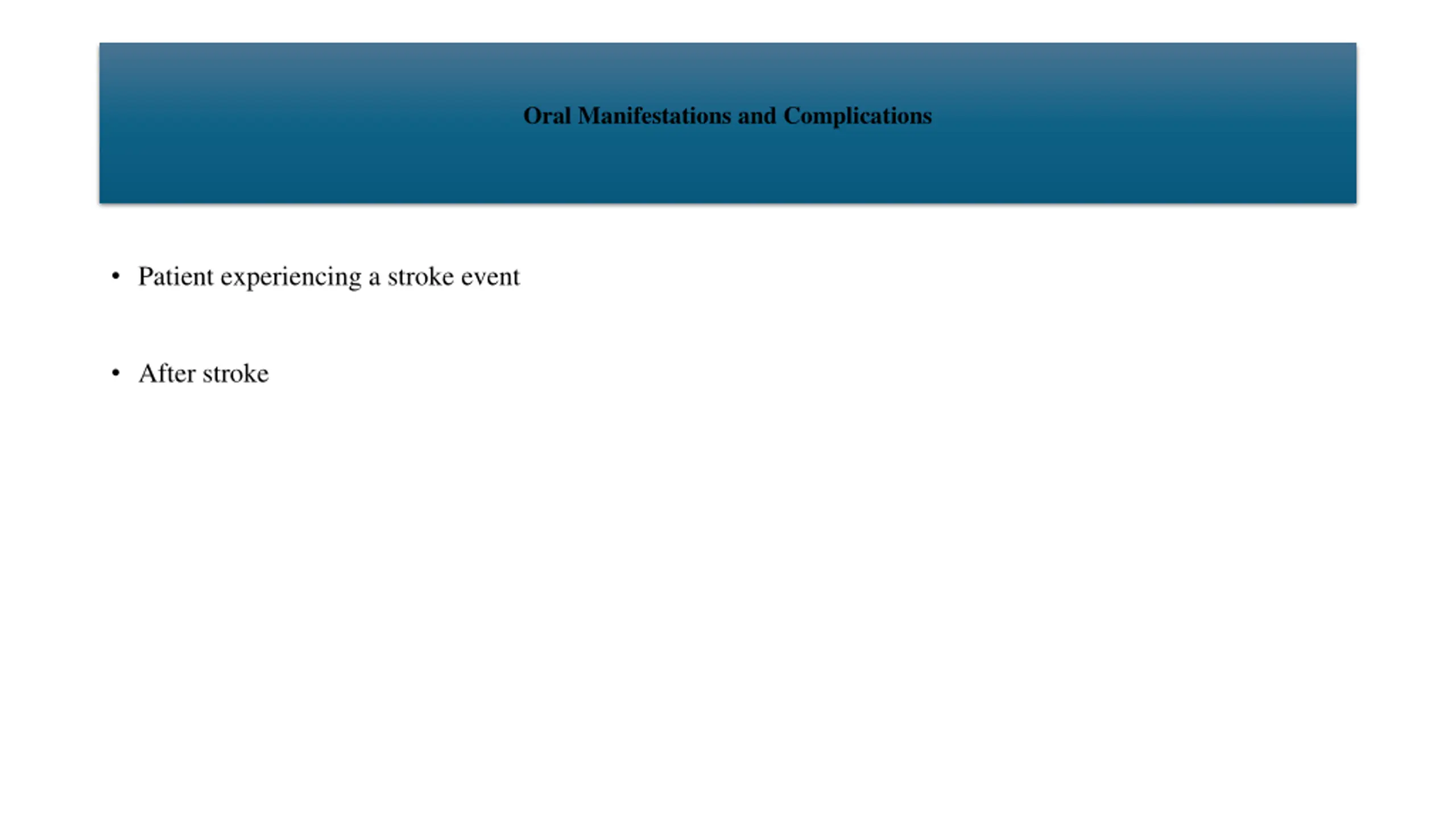 Oral Manifestations and Complications Patient experiencing a stroke event After stroke