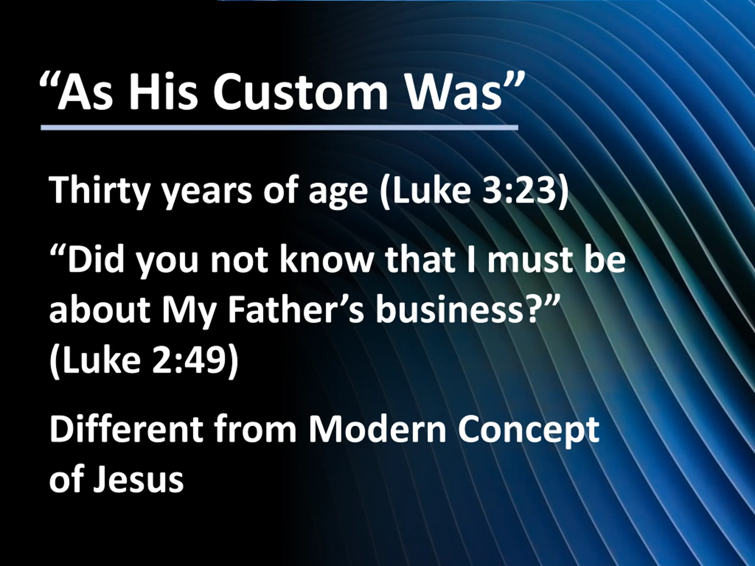 As His Custom Was Thirty years of age (Luke 3:23) Did you not know that I must be about My Father s business? (Luke 2:49) Different from Modern Concept of Jesus