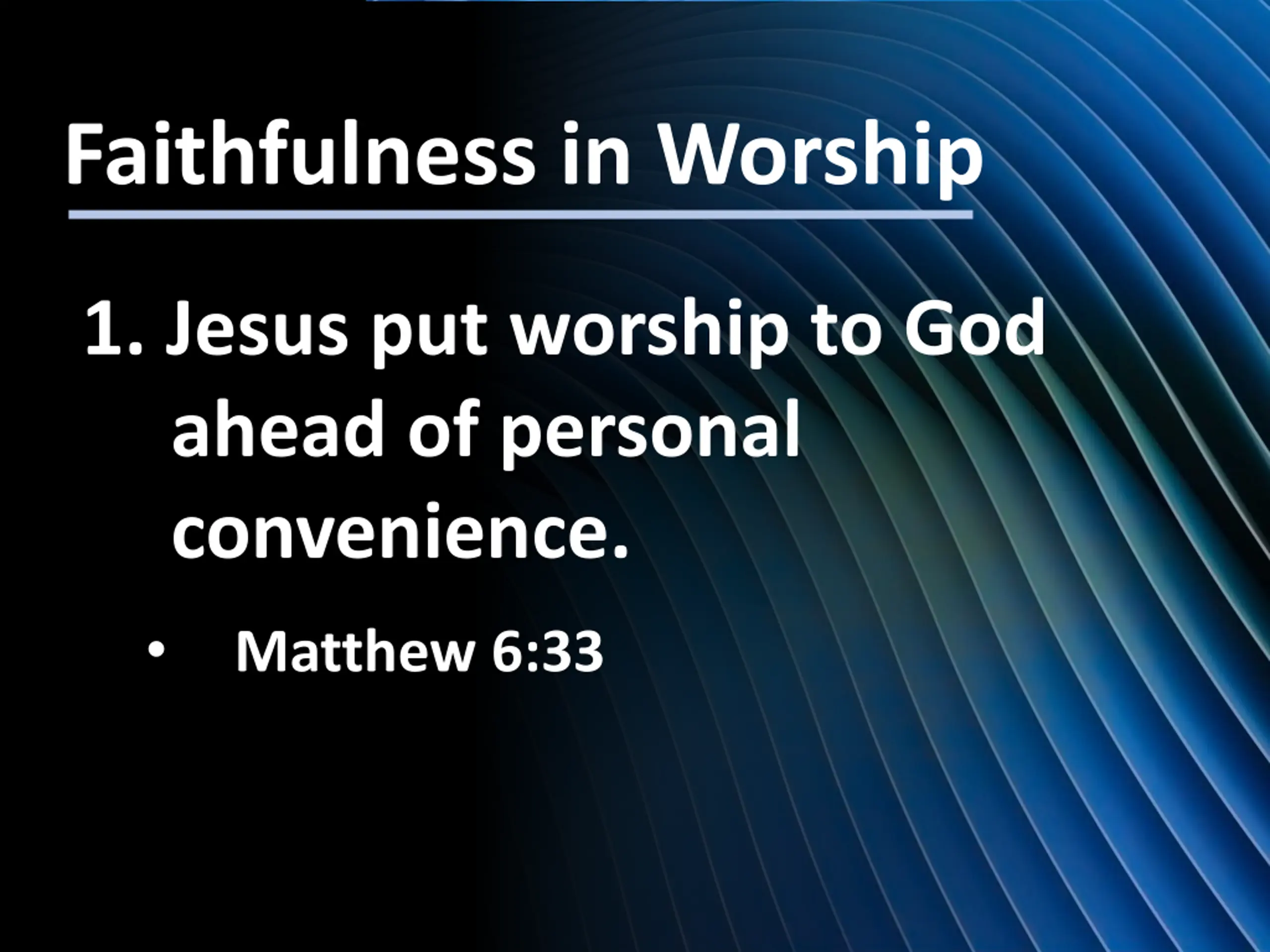 Faithfulness in Worship 1. Jesus put worship to God ahead of personal convenience. Matthew 6:33