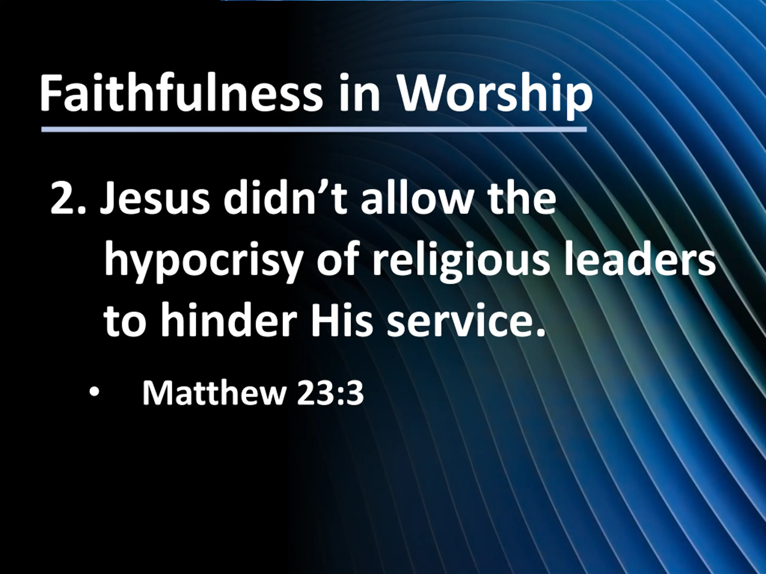 Faithfulness in Worship 2. Jesus didn t allow the hypocrisy of religious leaders to hinder His service. Matthew 23:3