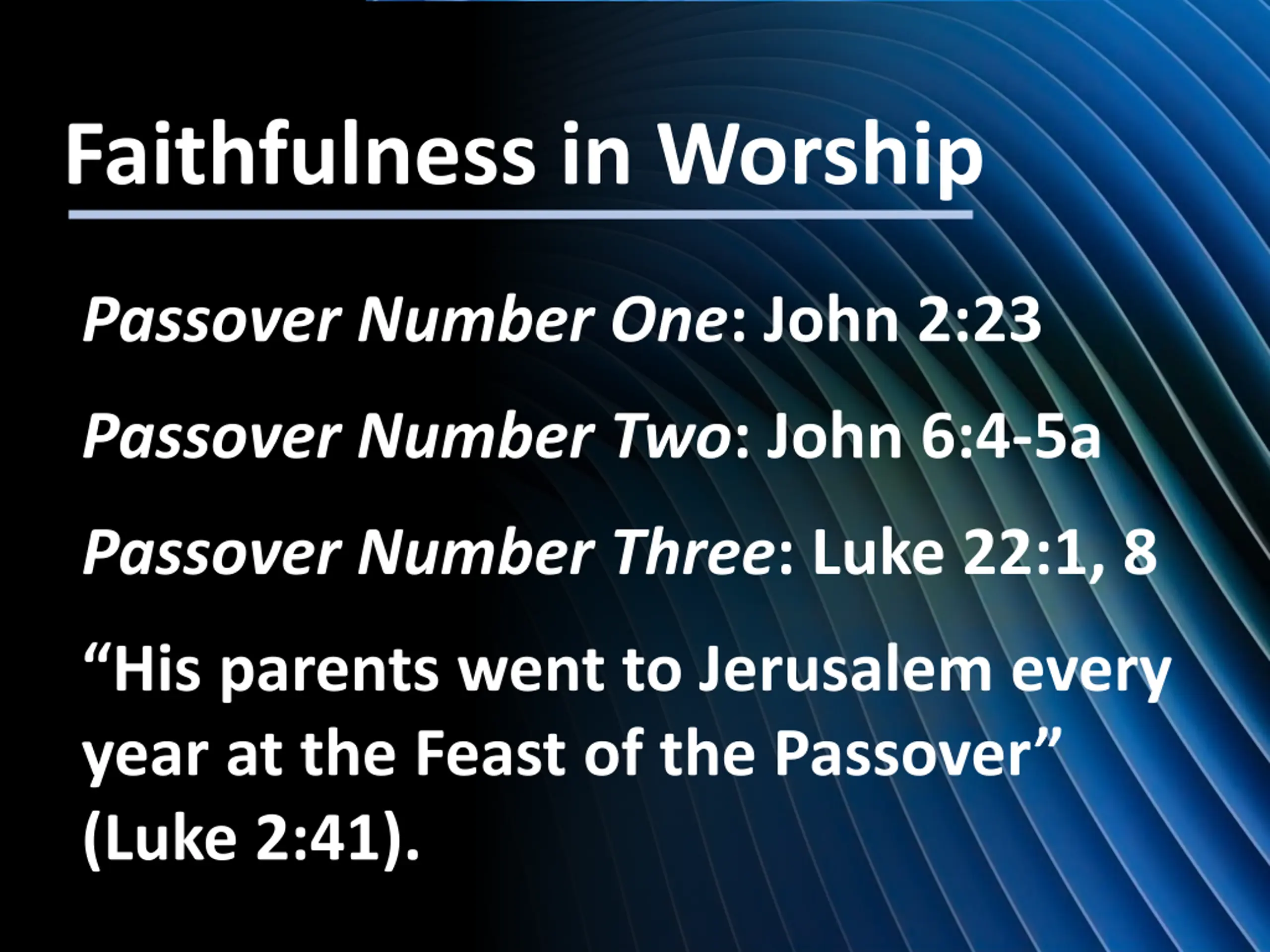Faithfulness in Worship Passover Number One: John 2:23 Passover Number Two: John 6:4-5a Passover Number Three: Luke 22:1, 8 His parents went to Jerusalem every year at the Feast of the Passover (Luke 2:41).