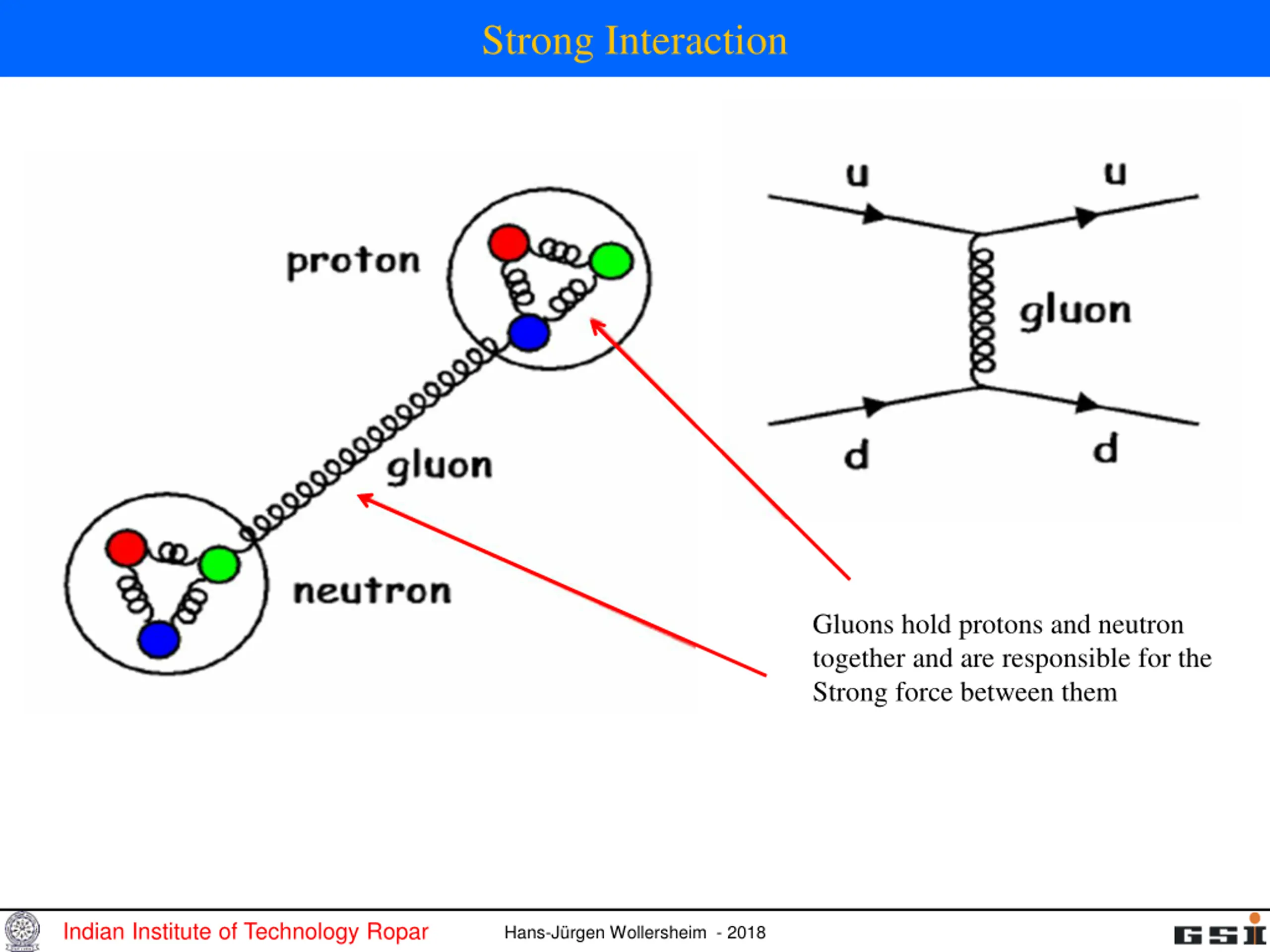 Strong Interaction Gluons hold protons and neutron together and are responsible for the Strong force between them Indian Institute of Technology Ropar Hans-J rgen Wollersheim - 2018