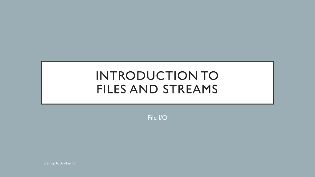 INTRODUCTION TO FILES AND STREAMS File I/O Delroy A. Brinkerhoff