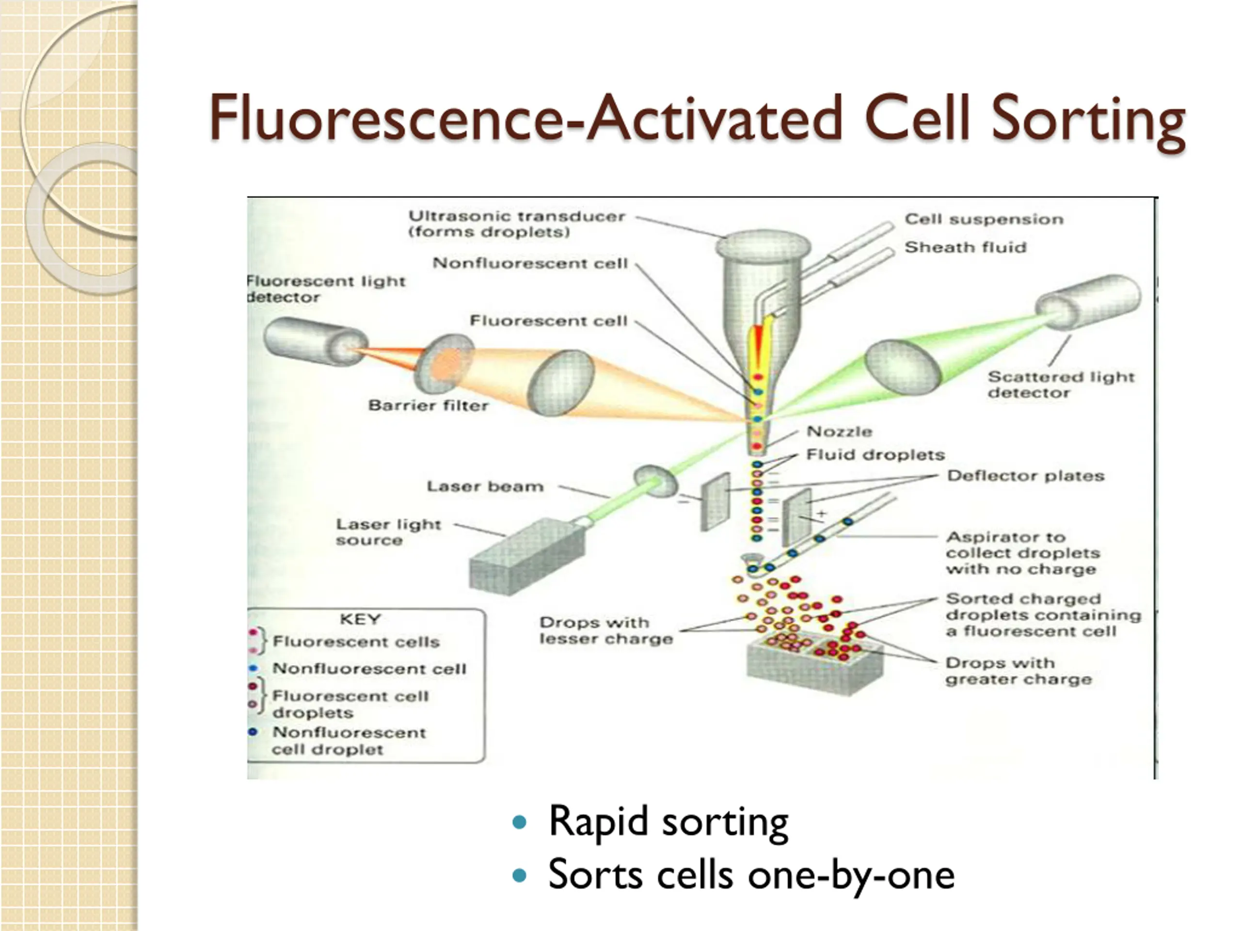 Fluorescence-Activated Cell Sorting Rapid sorting Sorts cells one-by-one