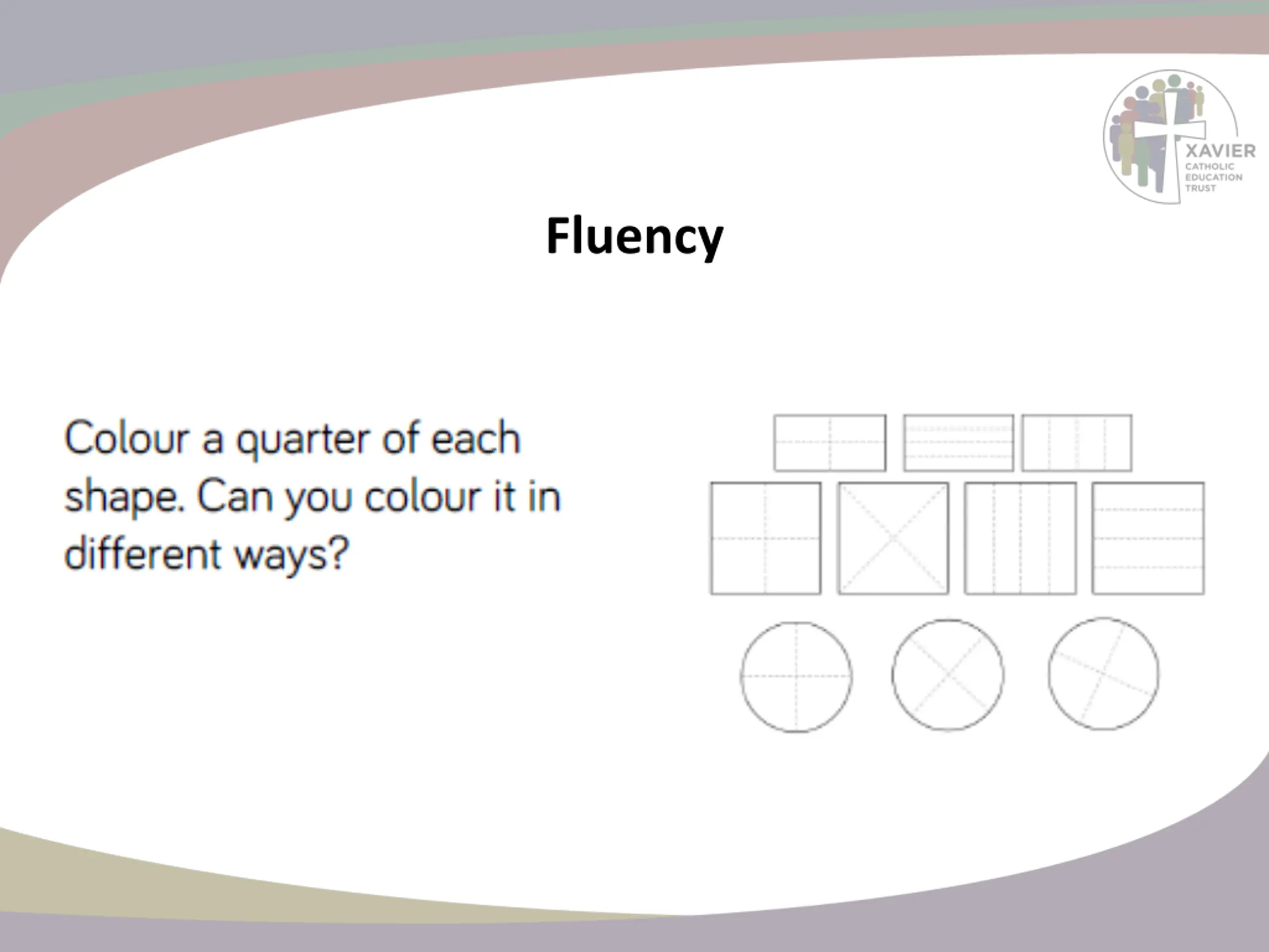 Year 1 Summer Block 2 Number: Fractions Find a quarter of a shape or object NCLO: Recognise, find and name a quarter as one of two equal parts of an object, shape or quantity.