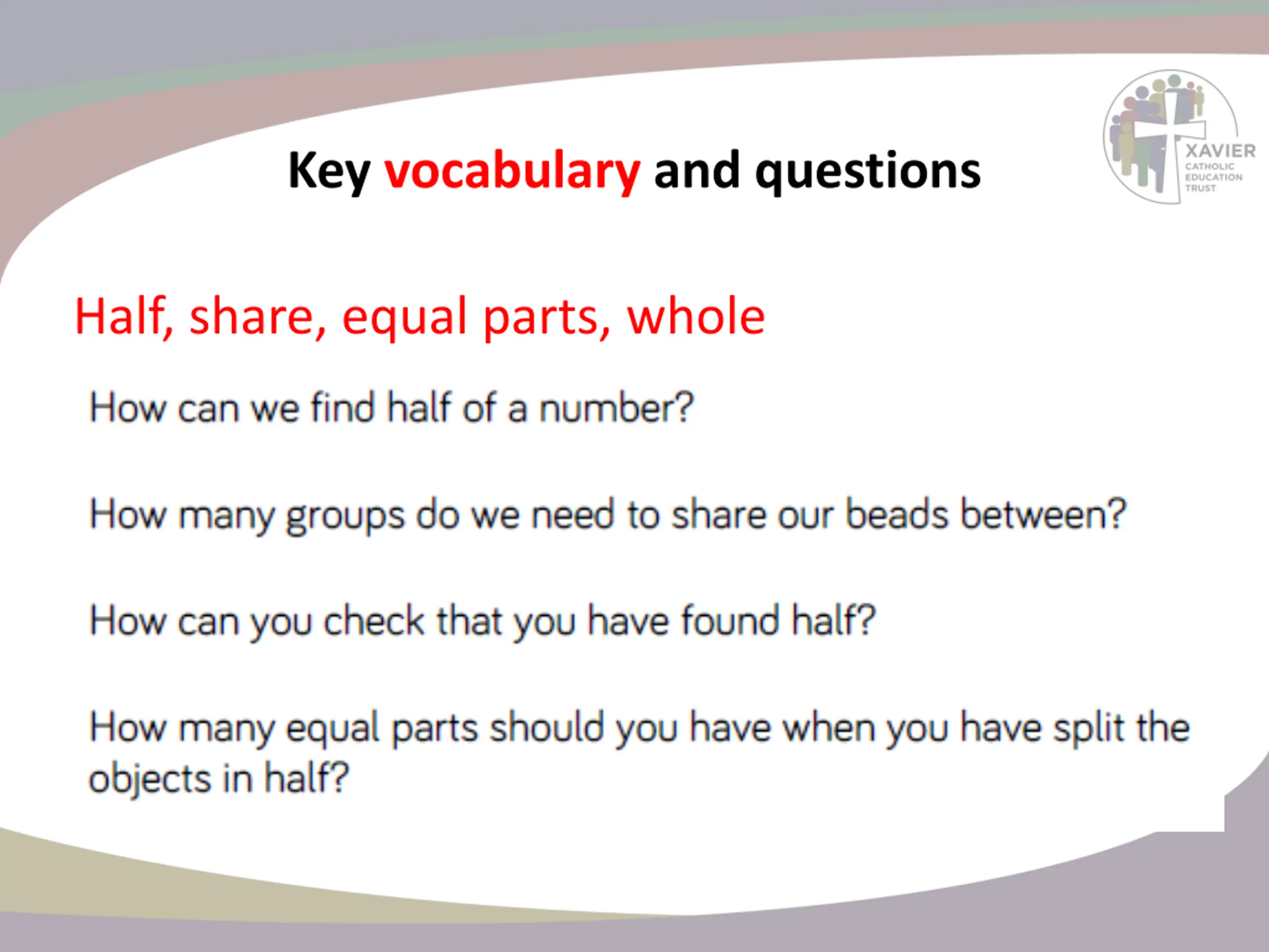 Year 1 Summer Block 2 Number: Fractions Halving a quantity NCLO: Recognise, find and name a half as one of two equal parts of an object, shape or quantity.
