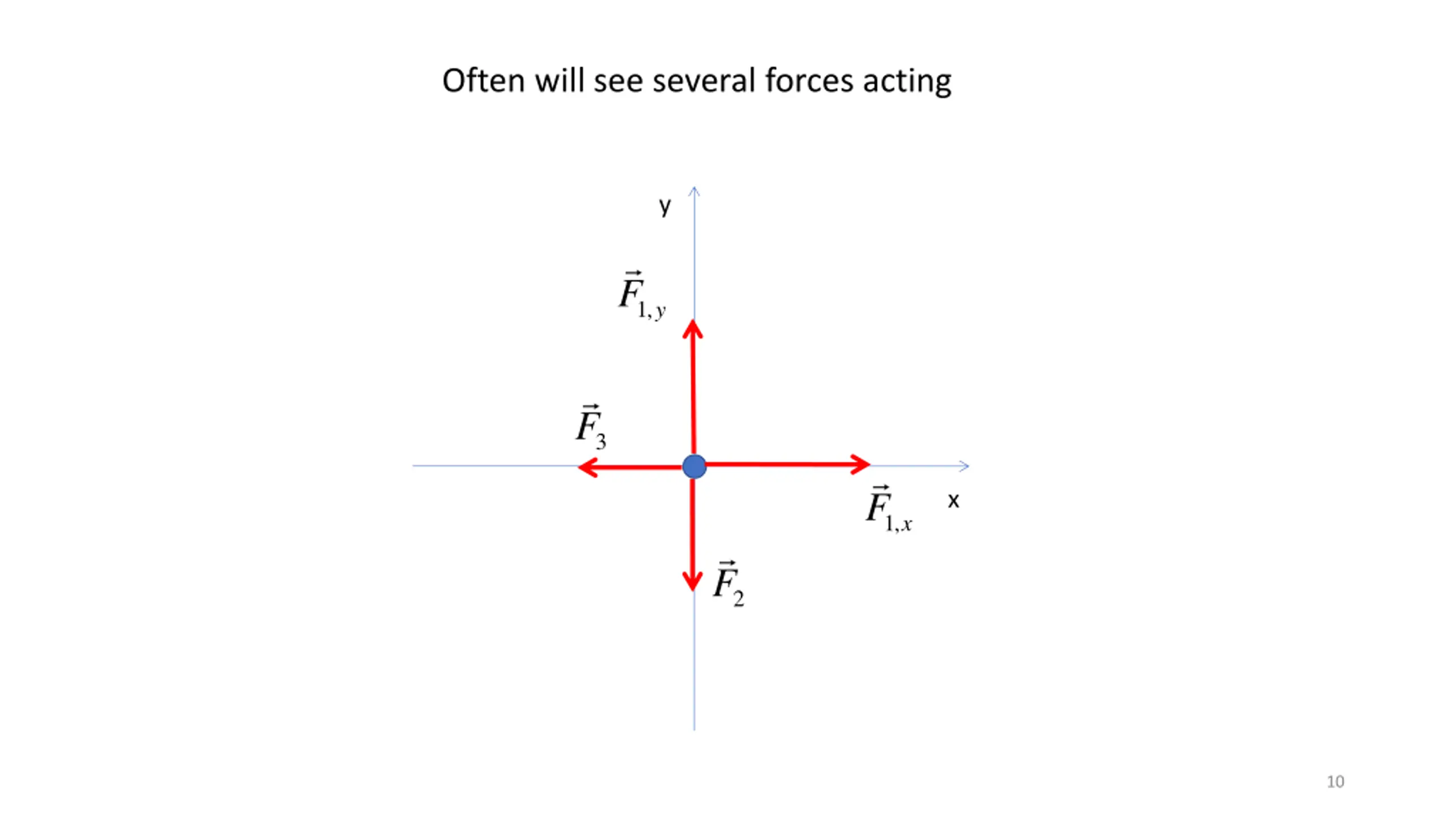 Often will see several forces acting y F 1,y 3 F F x 1,x 2 F 10